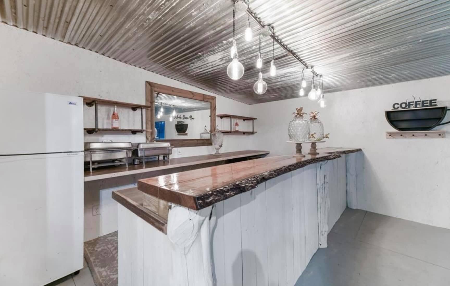 - All of our Chandeliers are dimmable - Comes with Uplighting and Dance Lighting - 3 Bathrooms are available in the Venue - Side room comes with a Rustic Bar, Refrigerator and Buffet Table