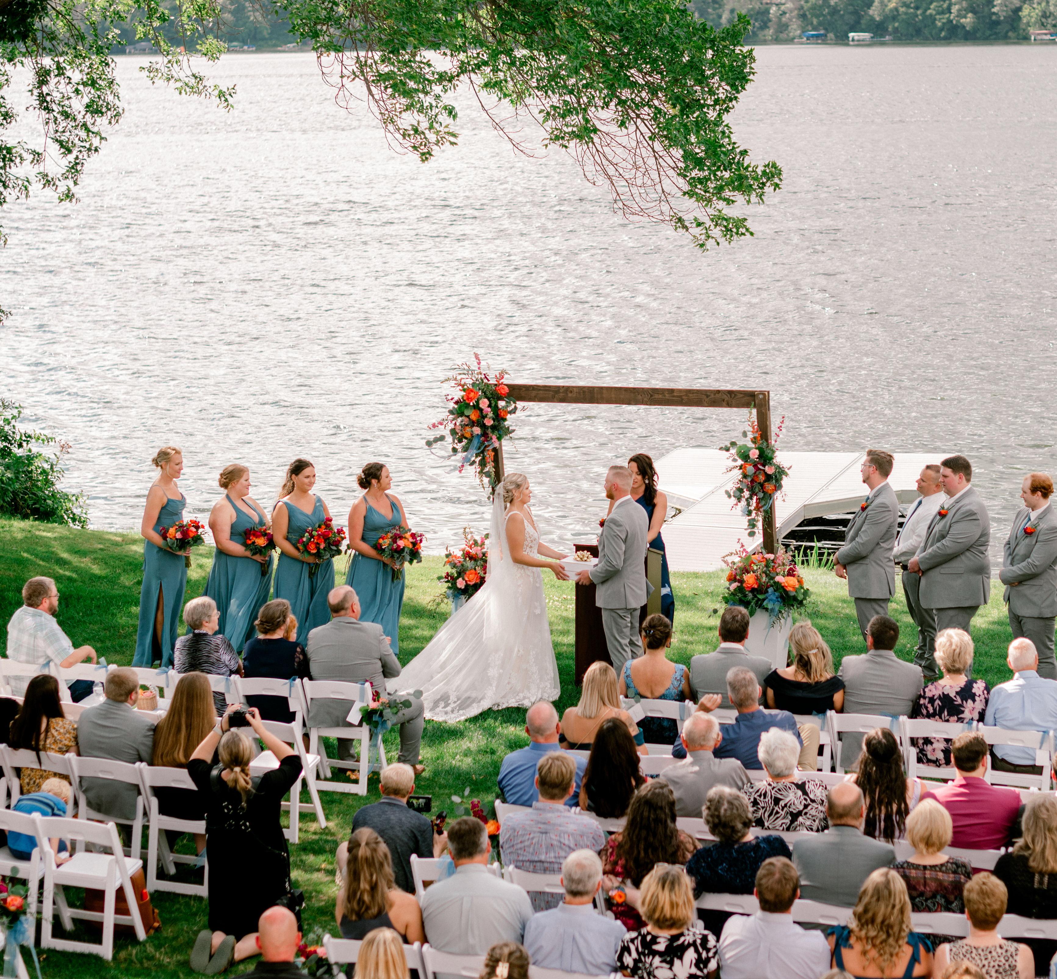 Getting married at Lake Wissota Golf and Events is an unforgettable experience. Breathtaking surroundings and stunning natural beauty along the shores of Lake Wissota create a picturesque wedding backdrop. Beginning with your first visit to our timeless facility, our event coordinator will guide you through every detail to customize your special day. Delightful cuisine from our Executive Chef and unparalleled service create a wedding day that accommodates the modest to the exquisite couple. Choose from our outdoor ceremony space along the lake and 6th green, or our newly remodeled interior event center to comfortably seat up to 300 guests. Celebrate with your guests during a cocktail hour on our lakefront patio or 360 degree wrap-around covered porch, and then dance the night away with a bar located on the dance floor. You deserve a location and experience worthy of your special day, and Lake Wissota Golf and Events is that place.