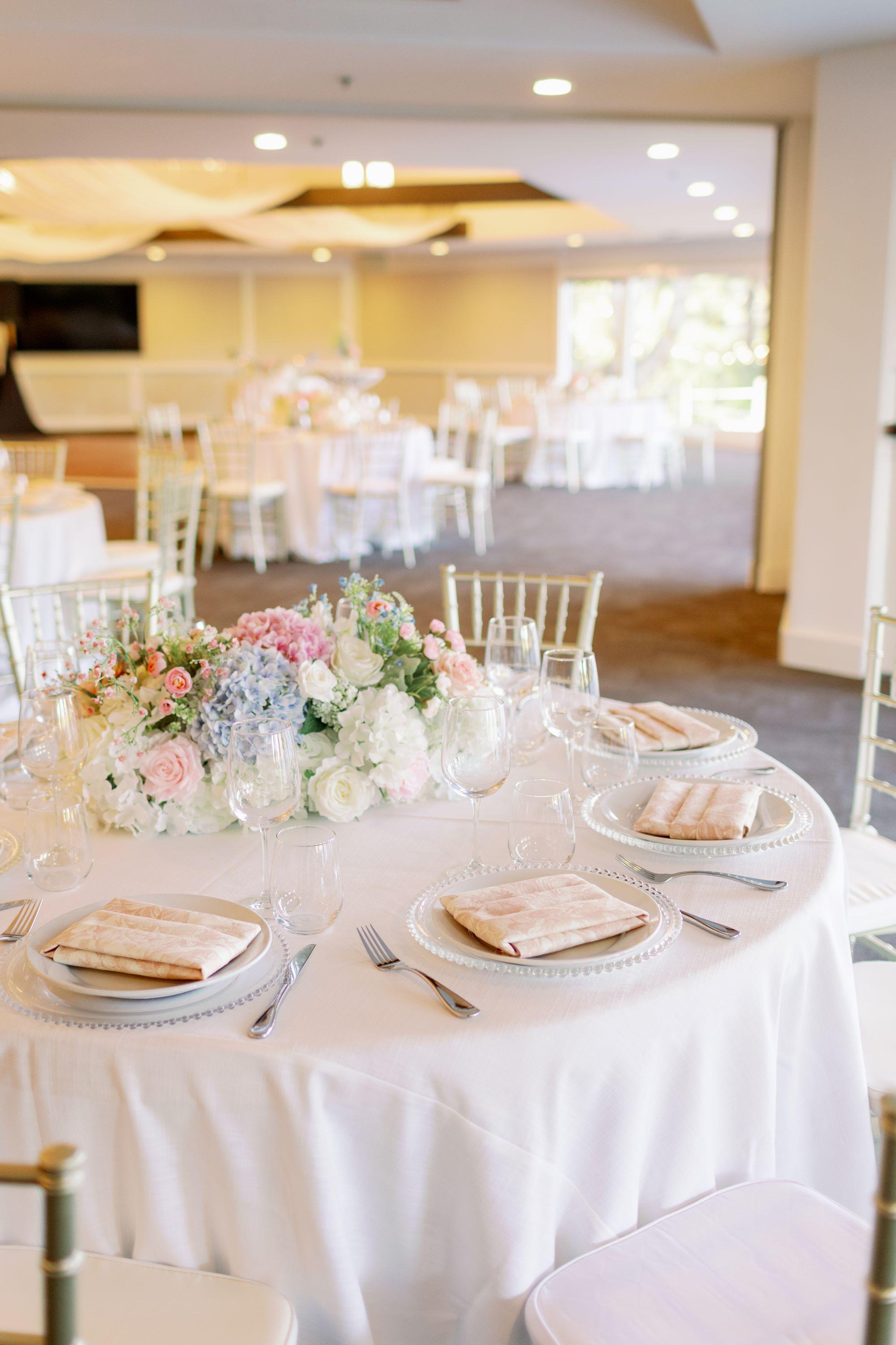 Five Hours of Event Time, Up to (5) High Cocktail Tables, Sweetheart Table or Head Table, 60” or 72” Round Tables, Auxiliary Tables, Banquet Chairs for Reception, Choice of White, Ivory or Black Floor-Length Polyester Linens, Choice of White, Ivory or Black Napkins, Standard clear votive candles, White China, Flatware, and Stemware, Complimentary Cake Cutting, 16’x16’ Wood Dance Floor (indoor receptions only), (3) Complimentary Umbrellas or Heaters, Complimentary Menu Tasting for Two