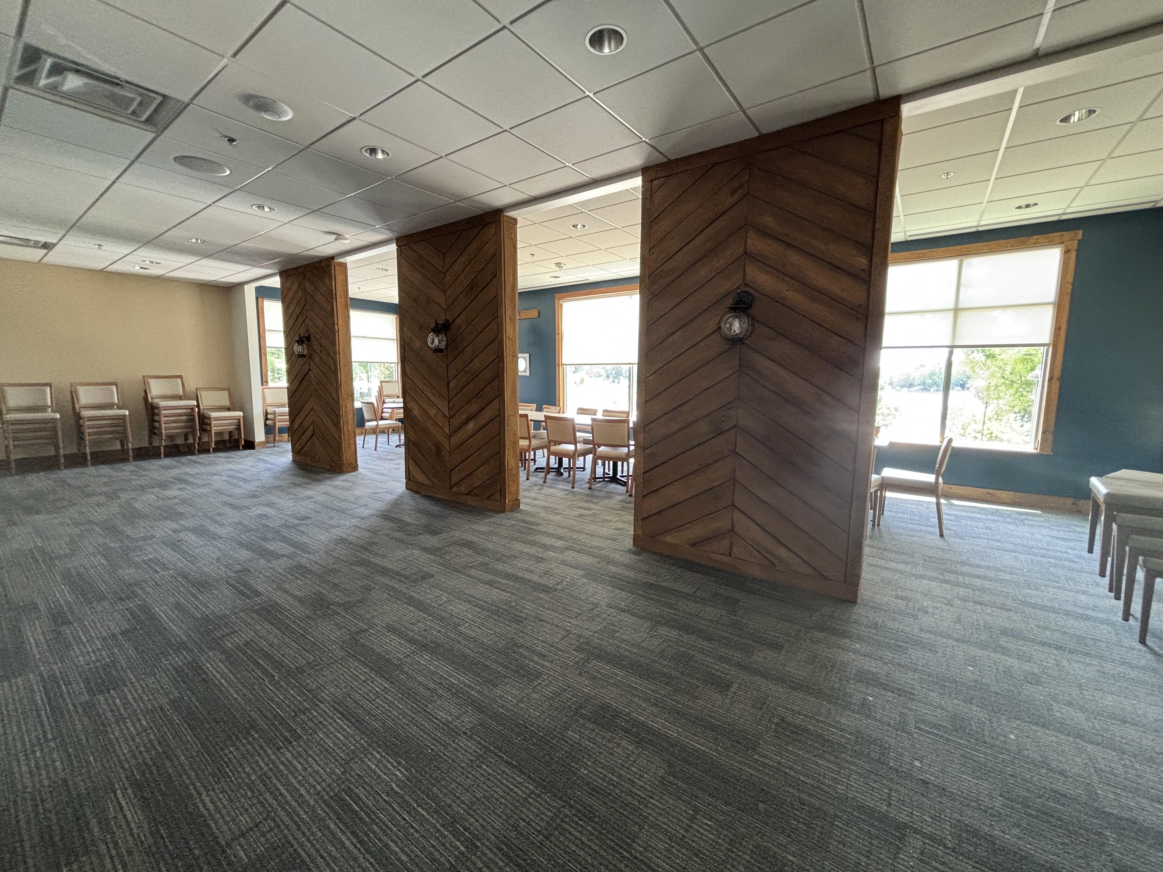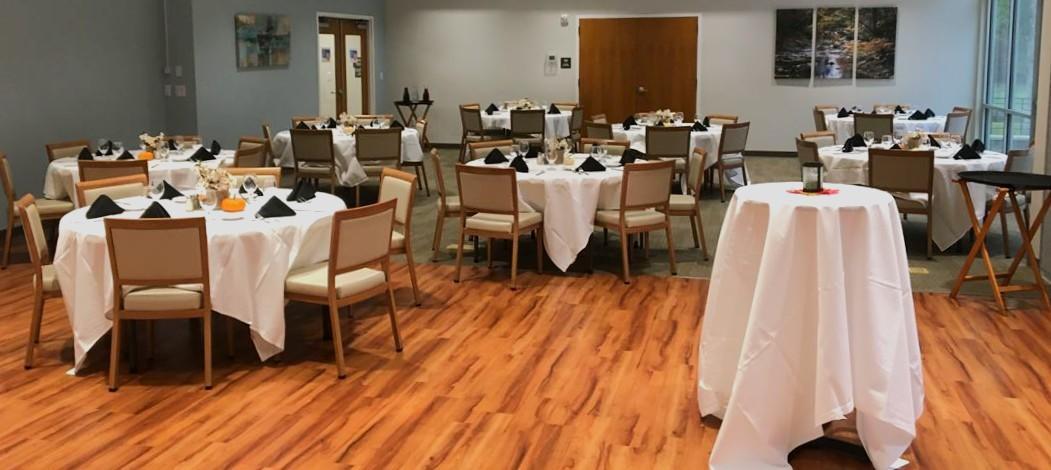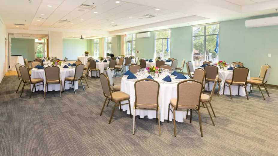 The room offers a versatile, large space perfect for your special occasion. With plenty of room to personalize, it includes an outdoor patio that overlooks the scenic Lake Monticello Golf Course—an ideal backdrop for unforgettable moments.