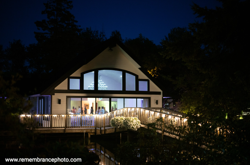 The Terrace room features a graceful 17-foot arched ceiling and opens to a lovely terrace over the water’s edge. The adjoining Gazebo Room features space for your spectacular buffet, guests will admire your scrumptious wedding cake in this area, or enjoy a beverage from the bar. The venue spills out on to a patio that accommodates additional lakeside seating.