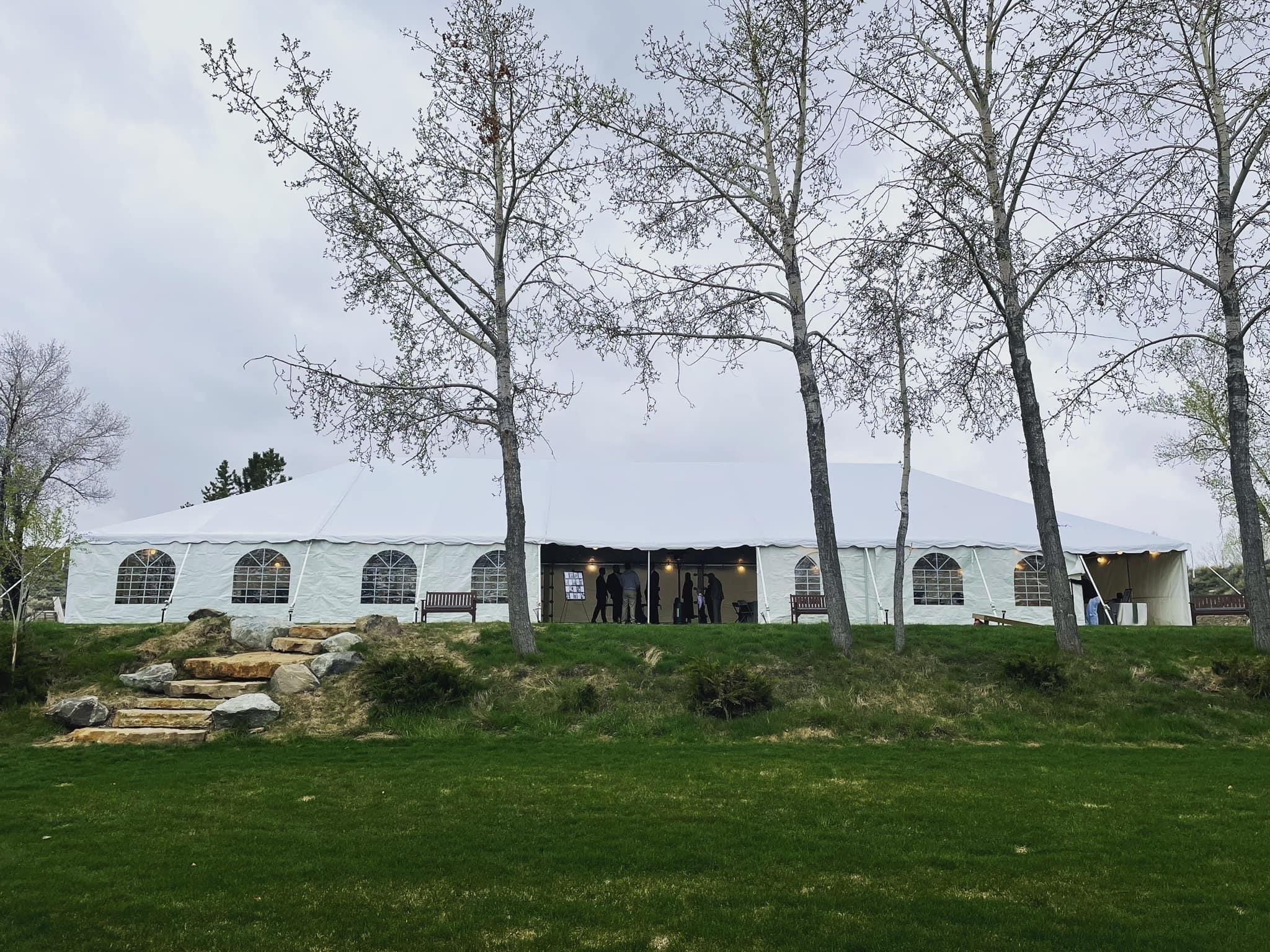 THE SPACE INCLUDES A BEAUTIFUL TREE LINED MEADOW WITH A 400O SQUARE FOOT TENT PROVIDING A SHELTERED RECEPTION SPACE.
