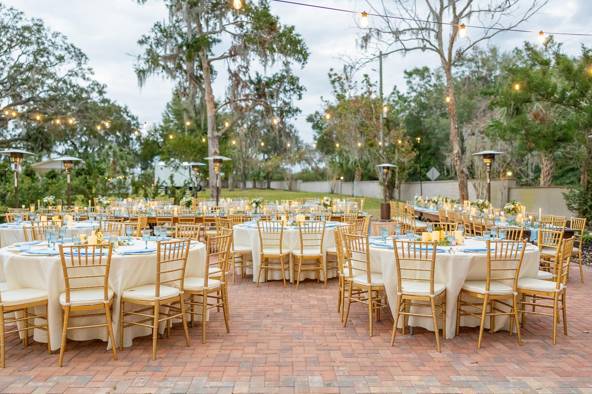 The Terrace is where love and laughter meet beneath the trees. This brick patio, surrounded by blooming gardens and gentle greenery, sets the stage for an unforgettable evening of dining and dancing. With views of the estate, gazebo, pool, and the shimmering lake beyond the dance floor, every celebration here feels like a storybook moment.