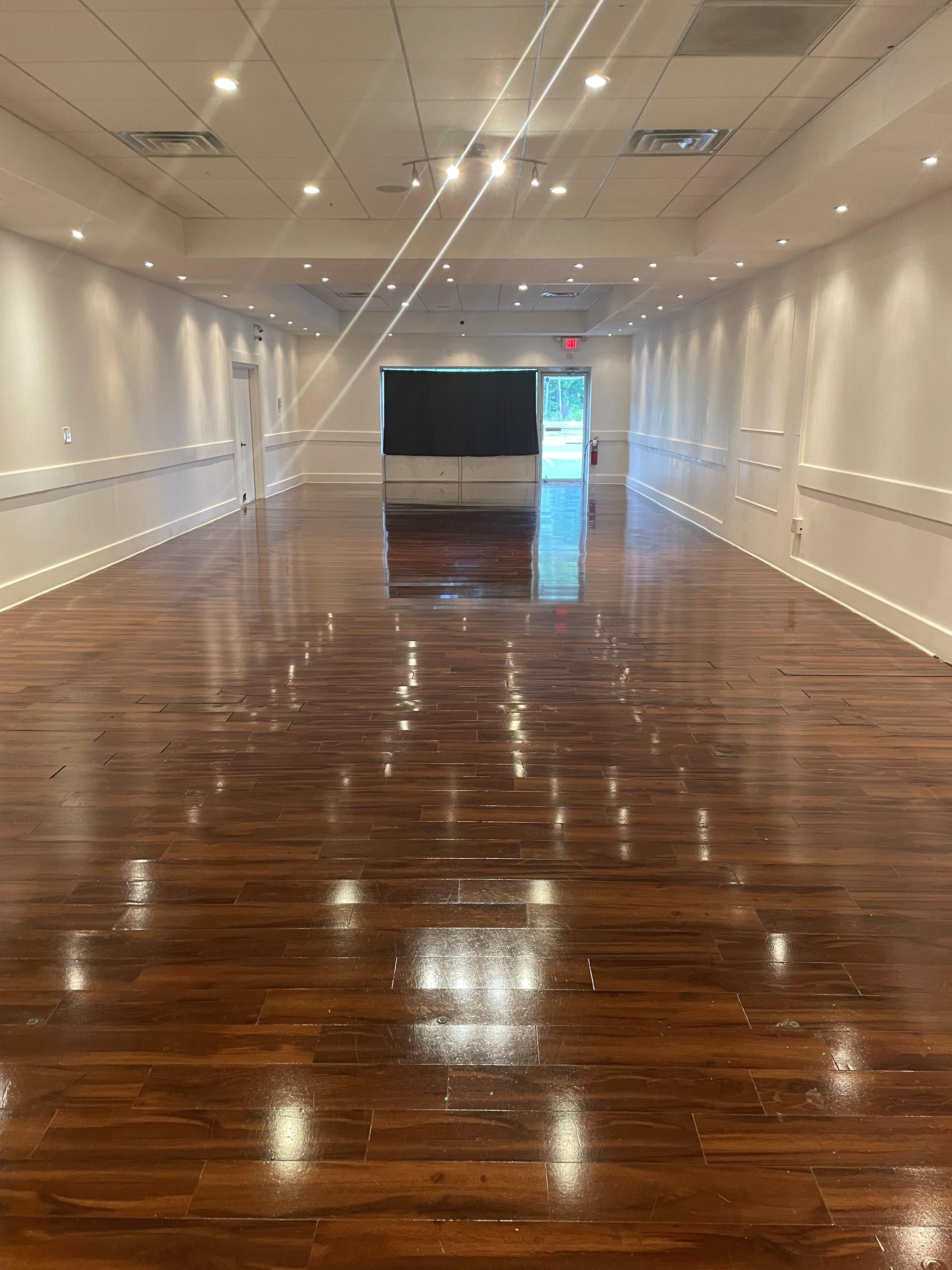 Classic modern space. Perfect space if you're looking for a blank canvas. White walls and wooden floors. We have a 100person Capacity. Great for Bridal showers, Bachelor/Bachelorette party, micro intimate weddings, etc. We have 1 bathroom. We have one extra room that has a hand washing sink, utility sink, and extra tables/chairs, Guest can use that room to store extra items, changing room, etc.