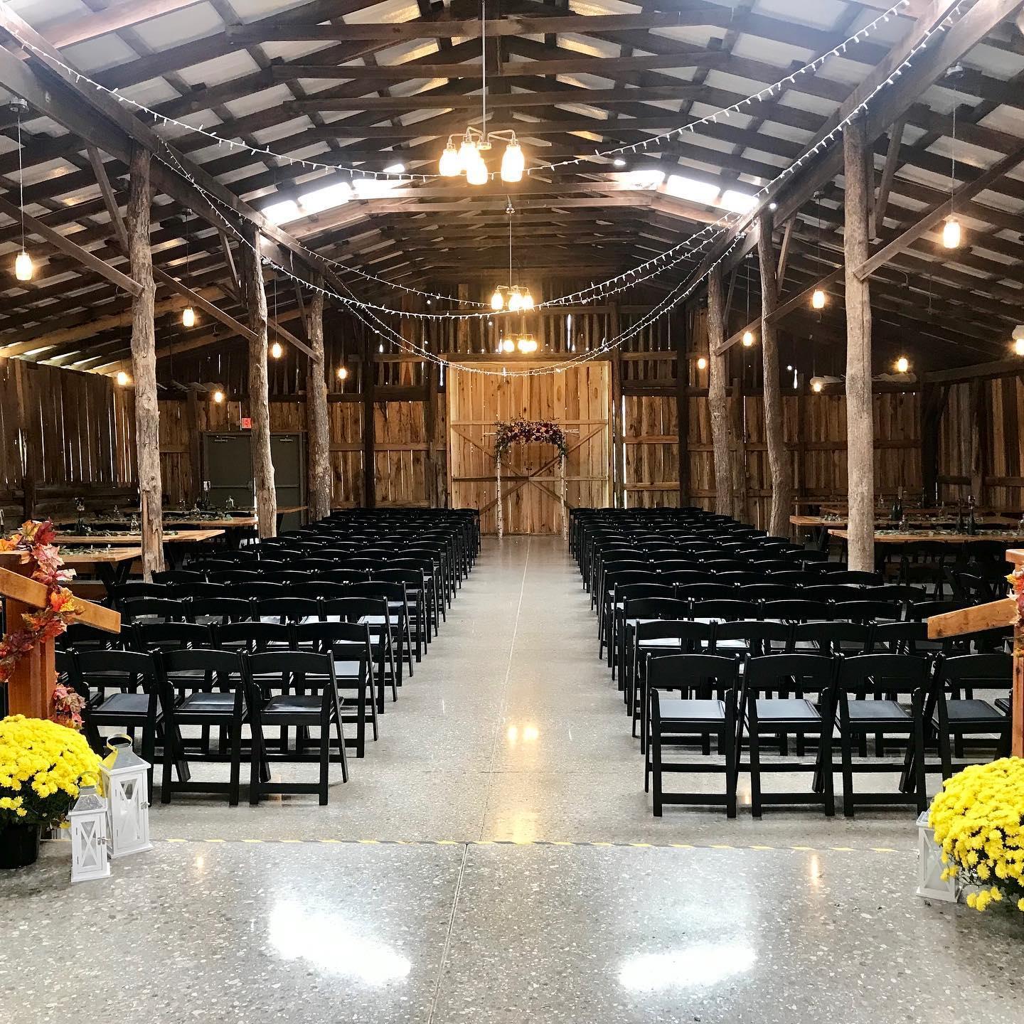 Welcome to Land O' Goshen Farm Event Center! A spacious 6700 sq. ft. under the roof, 8300 sq. ft. w the deck. Located on the historic 375 acre Belknap Farm in Goshen, Kentucky; the farm has been in the family for over a century. Inside is a polished concrete floor in the main hall, men/women's restroom, and bridal room, ten 10' x 4' giant slab and live edge tables, two 12' x 4' Banquet tables, 100 Black resin wood chairs, 6' rolling maple bar, and Wi-Fi/cable included w two flat screens. A White Birch wedding arch is also provided. Inside capacity of 200, restrooms were built for 400. There are four 60" windmill fans located in the main hall lower section to keep everyone cool. HVAC services provided to the five enclosed rooms: bridal/groom, men/women restroom and Prep Room. Handicap parking out front, 60 car parking lot close by. Come visit LOGEC, where rustic meets class!