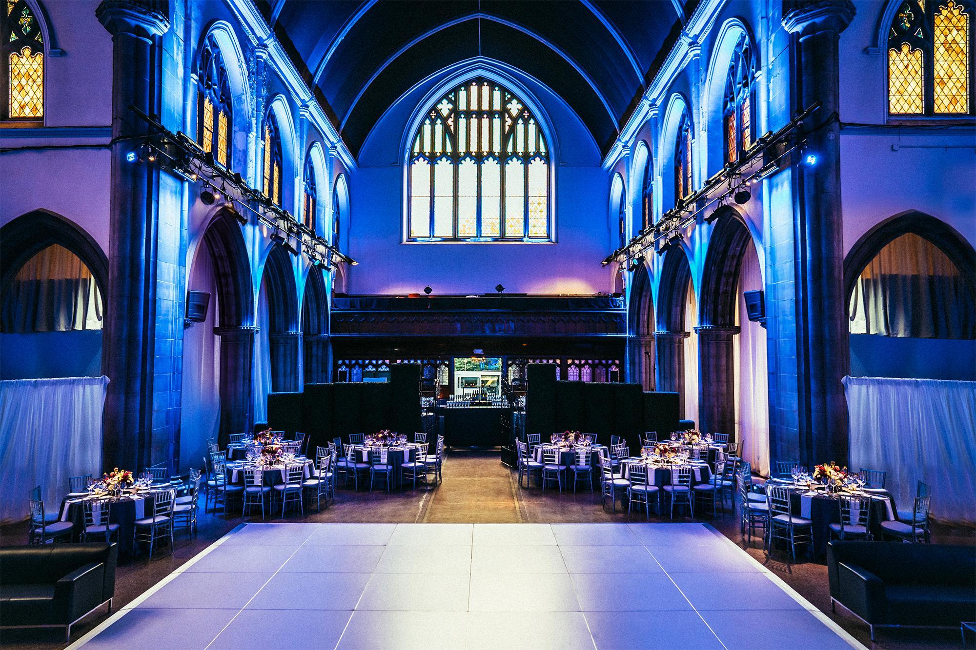 Our spaces range from efficient conference rooms to a gymnasium; from an intimate chapel to a magnificent neogothic main hall. 7,500 sq ft. of available event space, flexible for a variety of events. Capacity for 300 person seated dinner. In-house event services team.
