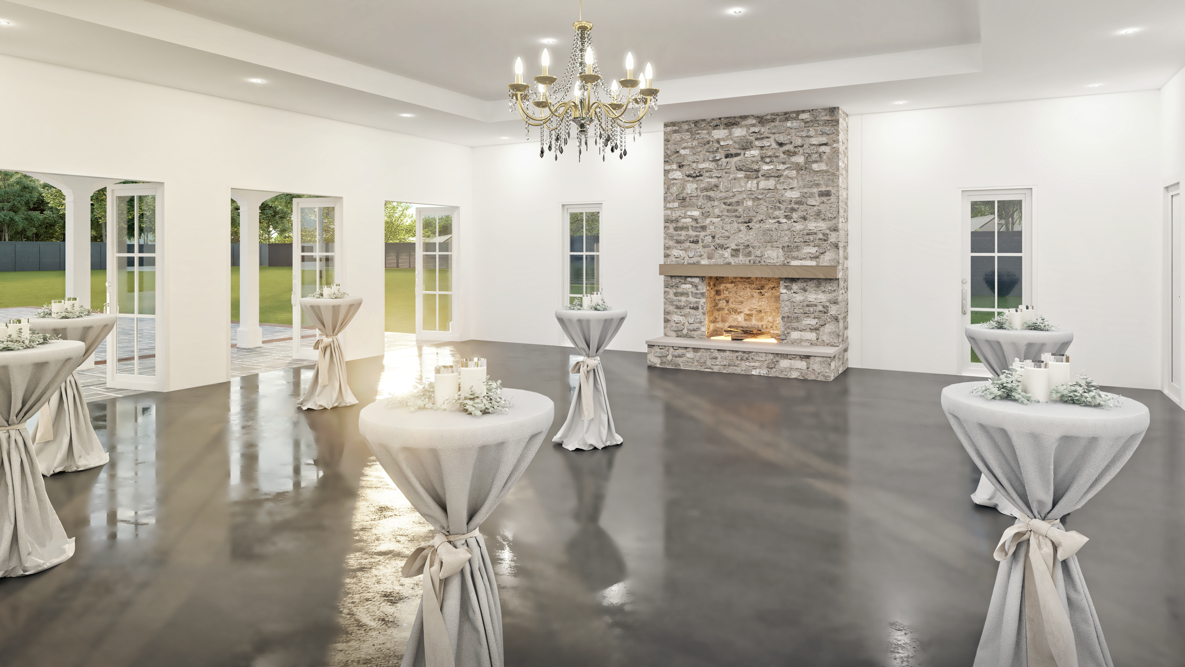 Our Main Hall is designed to host your cocktail hour and reception with a low country, French elegance vibe!