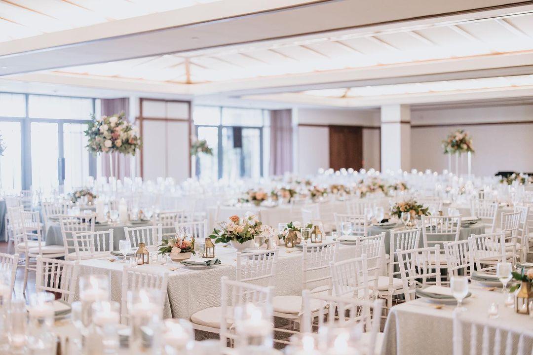 • A private preparation room • Guest access to the outdoor gardens after 6 p.m. • 35 sixty-inch round tables • 300 designer chairs for indoor use • Set-up and removal of specified configuration within the great hall • On-site security • Parking for 350 cars in the main parking garden
