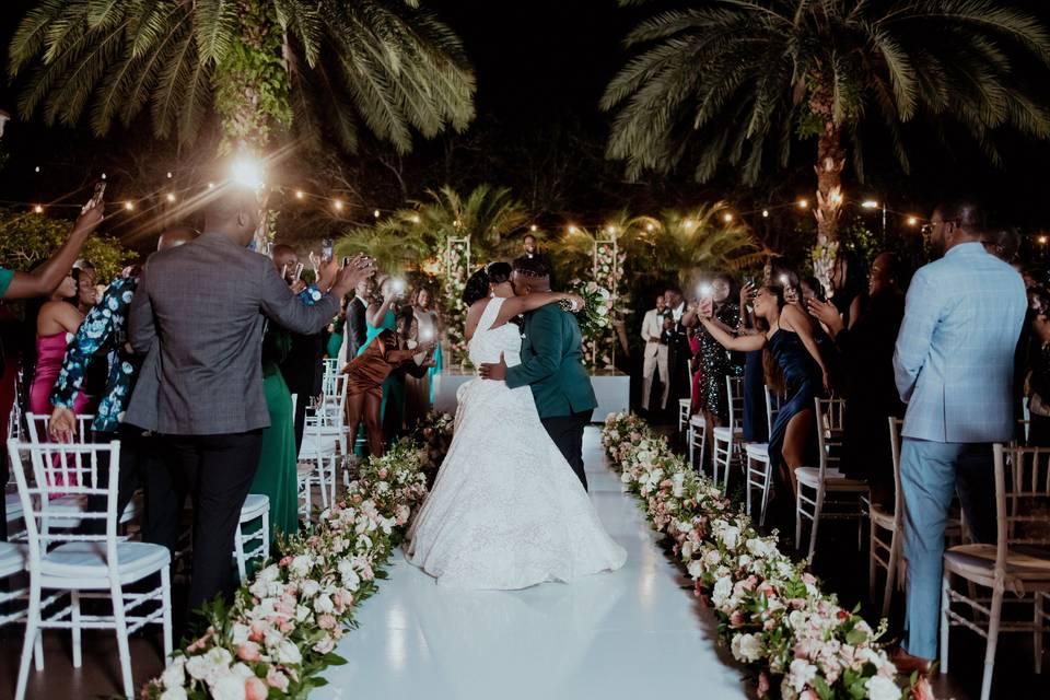 5,000 square feet of outdoor space that is exclusively yours to enjoy for your special day, providing the perfect backdrop for both your ceremony and reception. You may design your event using LAVAN’s entire property, starting with your dream ceremony in the lush 5,000-square-foot courtyard replete with tropical landscaping, a waterfall, and a fountain. The garden bistro lights along with the uplighting of our palm trees make the garden look amazing at night!