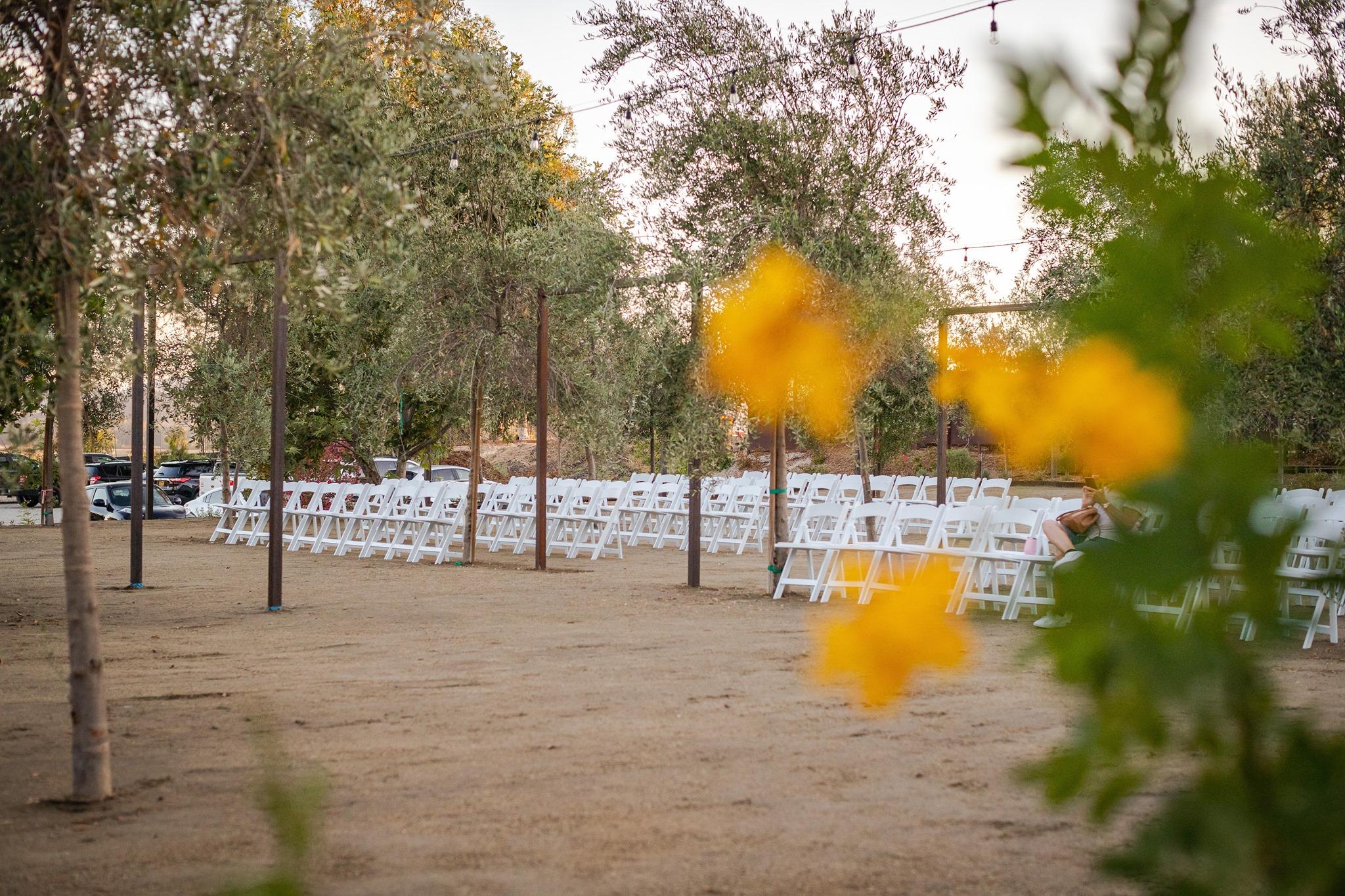 Located in the northeast corner of the ranch, the Olive Grove is a 4000 sq. ft. of space that can be used for anything from your reception to the ceremony. This space can seat up to 255 people theater style and has a beautiful ambiance surrounded by the trees.