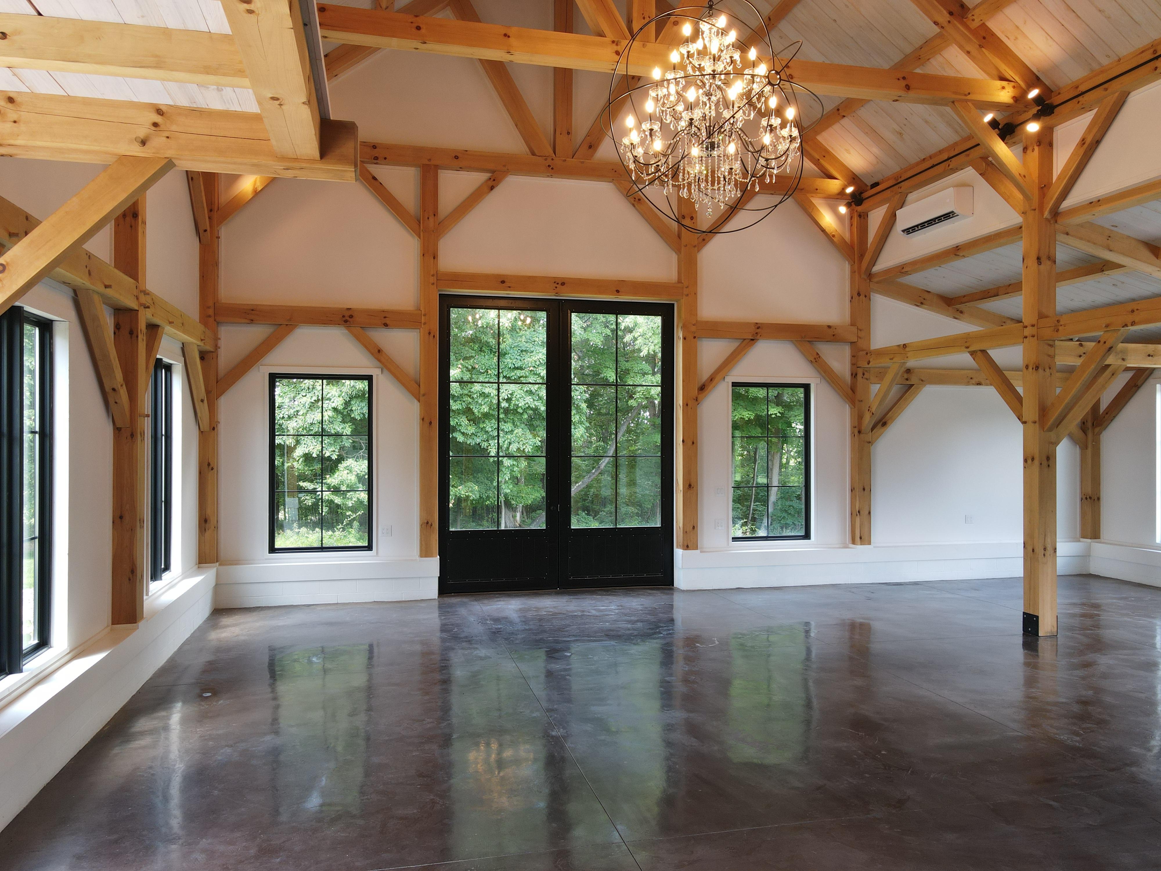 This space offers nearly 2,000sq ft of indoor space, which provides a fully customizable layout for ceremony, dinning & dancing. Our floor to ceiling custom glass doors bringing the views of rolling flower fields indoors. Every season provides breathtaking views, from fresh spring greenery & new lavender blooming, summers bursting with a rainbow of color in our wildflower fields, fall adoring it's coveted peek foliage & winter never disappoints with a snow globe -winter wonderland experience.