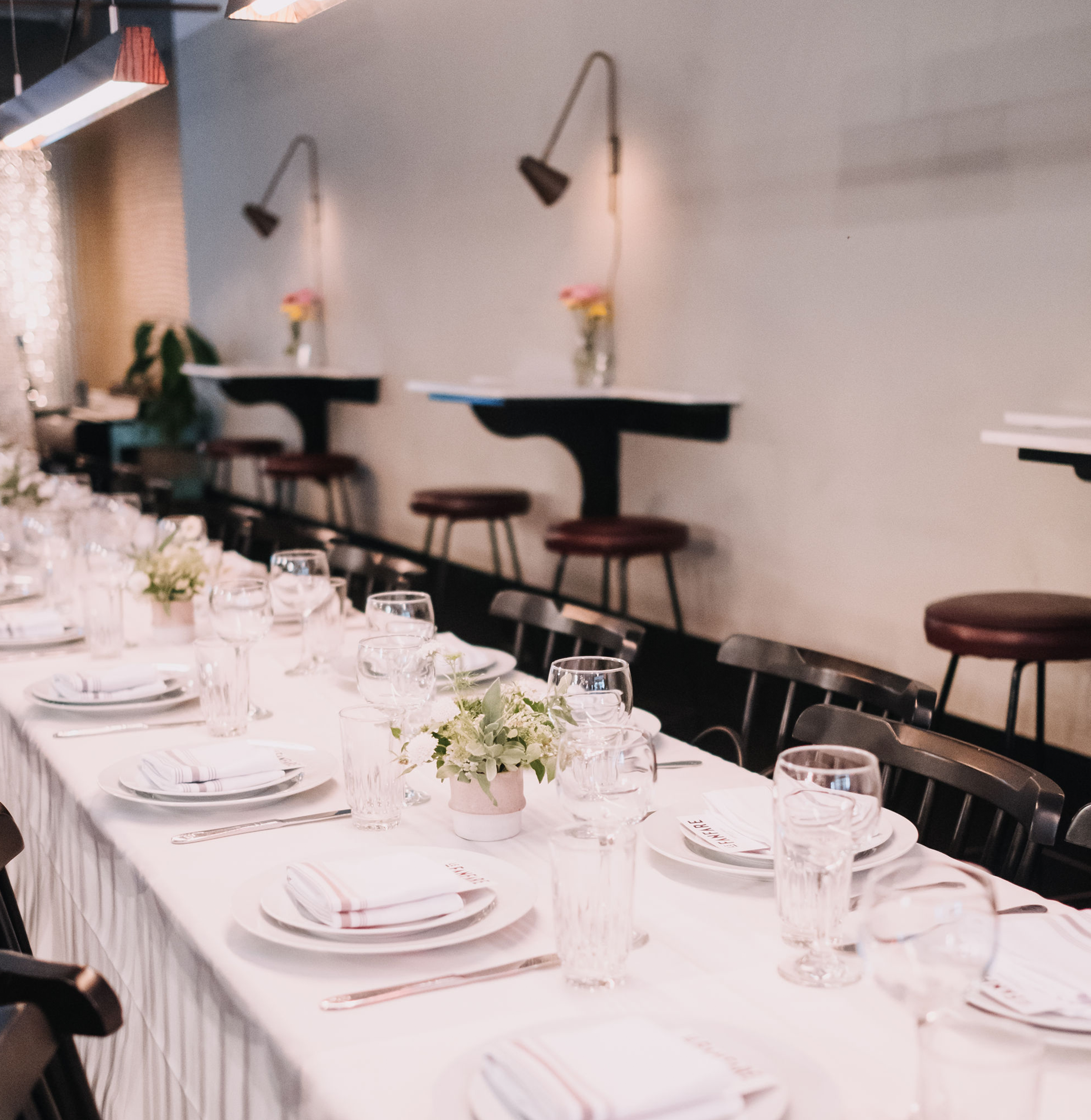 Our wedding reception and event packages are available in a variety of different options and can be designed to suit your venue. We are also able to provide wedding cakes. Milan artist and architect Giuseppe Amato helped design the space, a play on contrasts, both traditional and modern as well as sophisticated yet comfortable. Two communal tables stretch the length of the intimate restaurant (that can seat 20 and 18 people, respectively or can be combined to seat 38), flanked by beautiful wooden booths and marble tables for two along the opposite wall. Our entire capacity is 75 guests seated. For Summer 2016, we have opened up our backyard as well. Le Fanfare's philosophy is simple: Offer rustic and excellent Italian cuisine in an enticing and warm environment complimented by a beautiful wine and cocktail offerings with a live jazz soundtrack. We welcome any musical act you'd like to bring in, and have a back stage area set up for any musical needs.