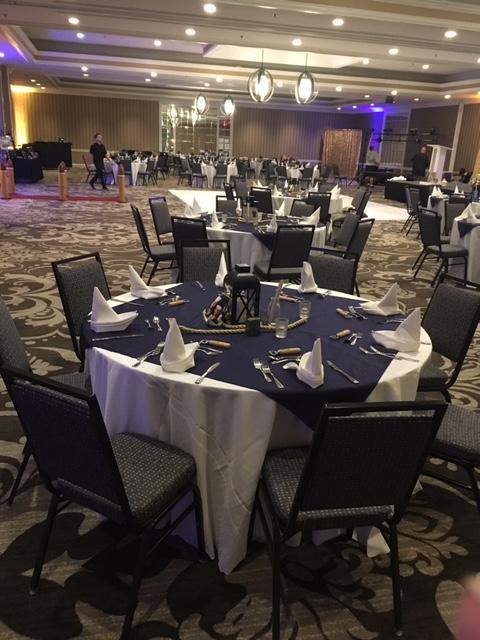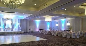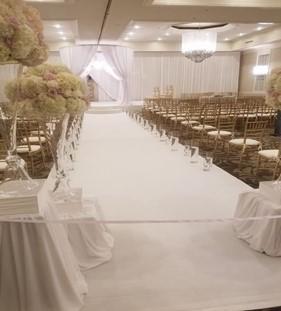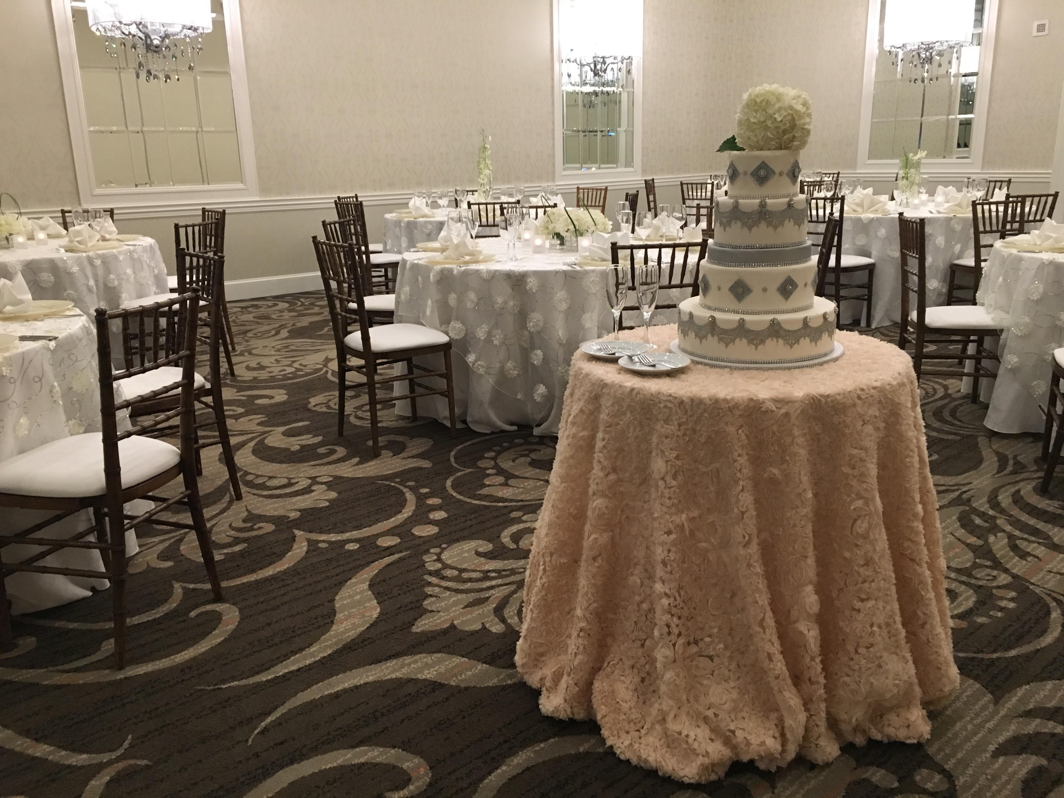 -Dimmable Lighting -Large Foyer Space -Round, Square and Rectangle Tables Chairs -Grey/Black Banquet Chairs -White, Ivory, Black Table Cloths