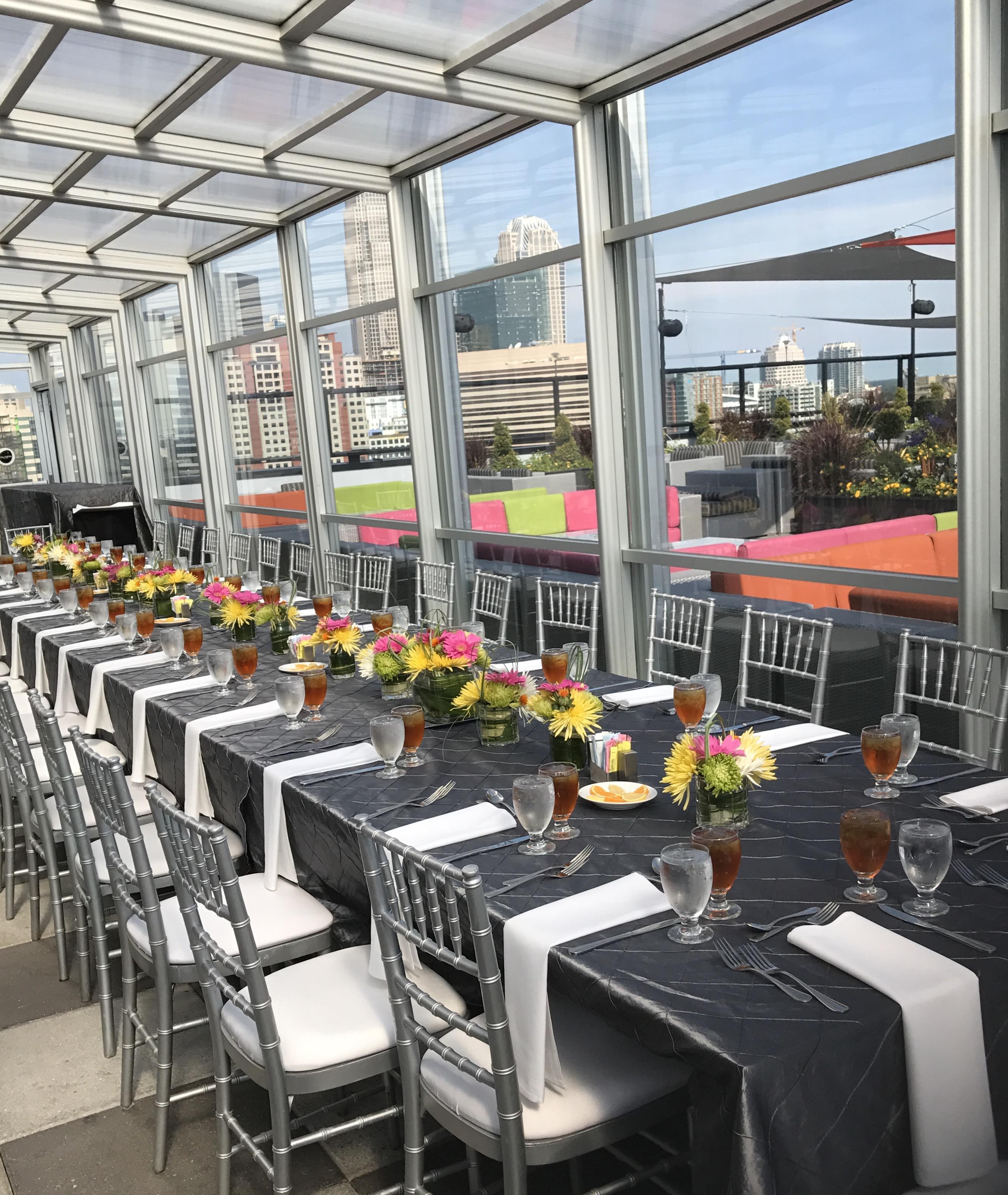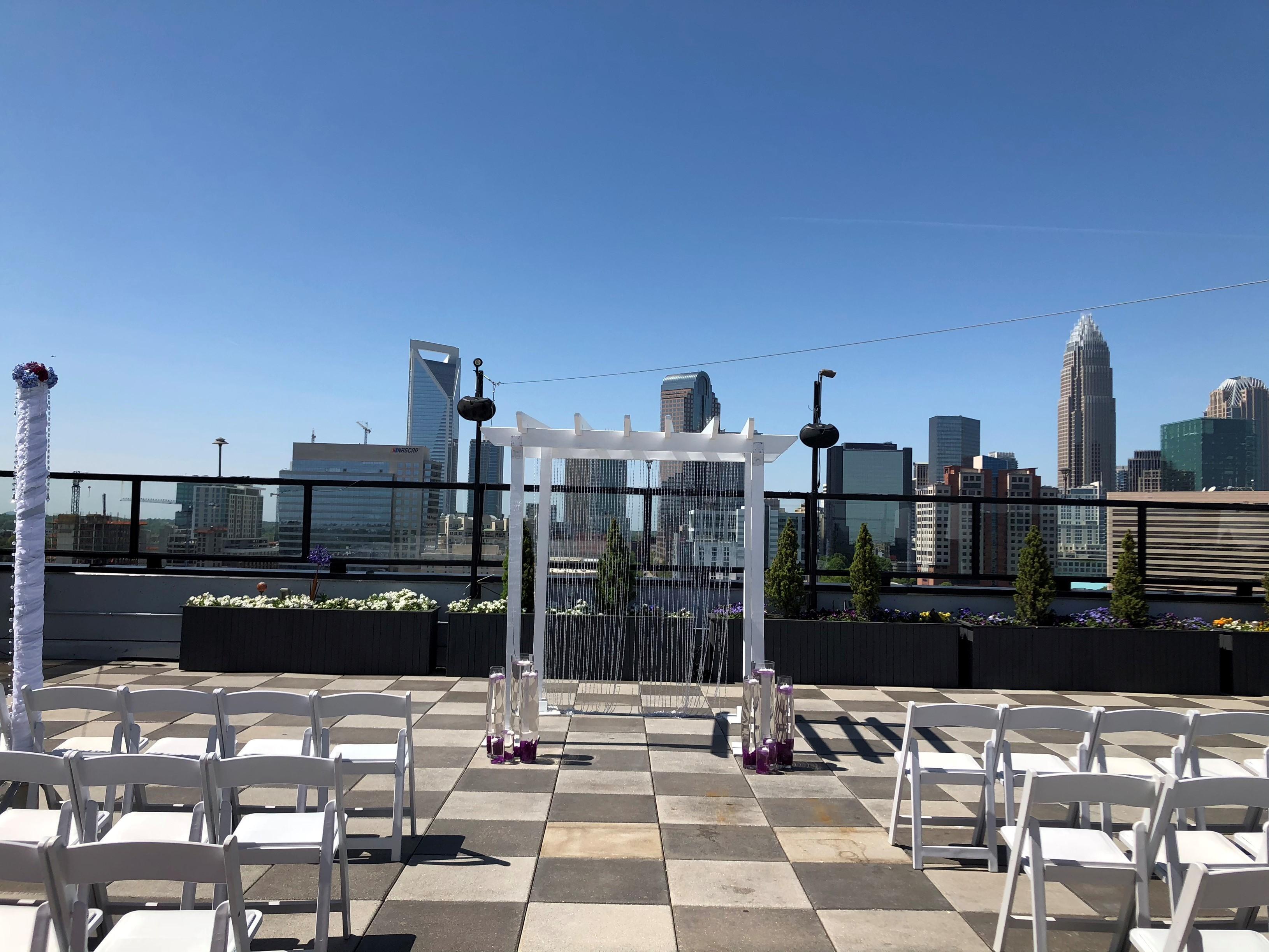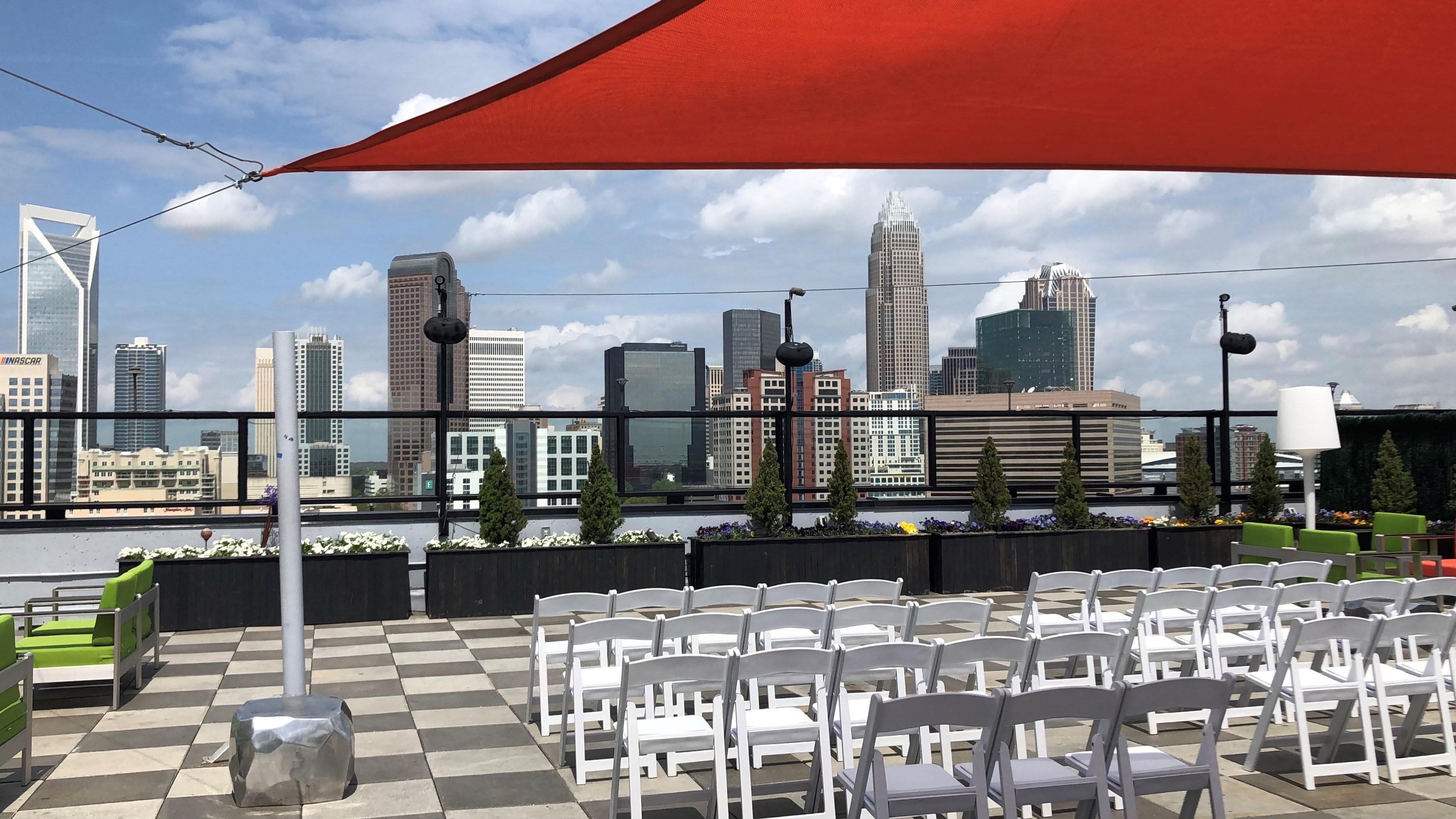 Outdoor rooftop space with amazing view of Charlottes skyline