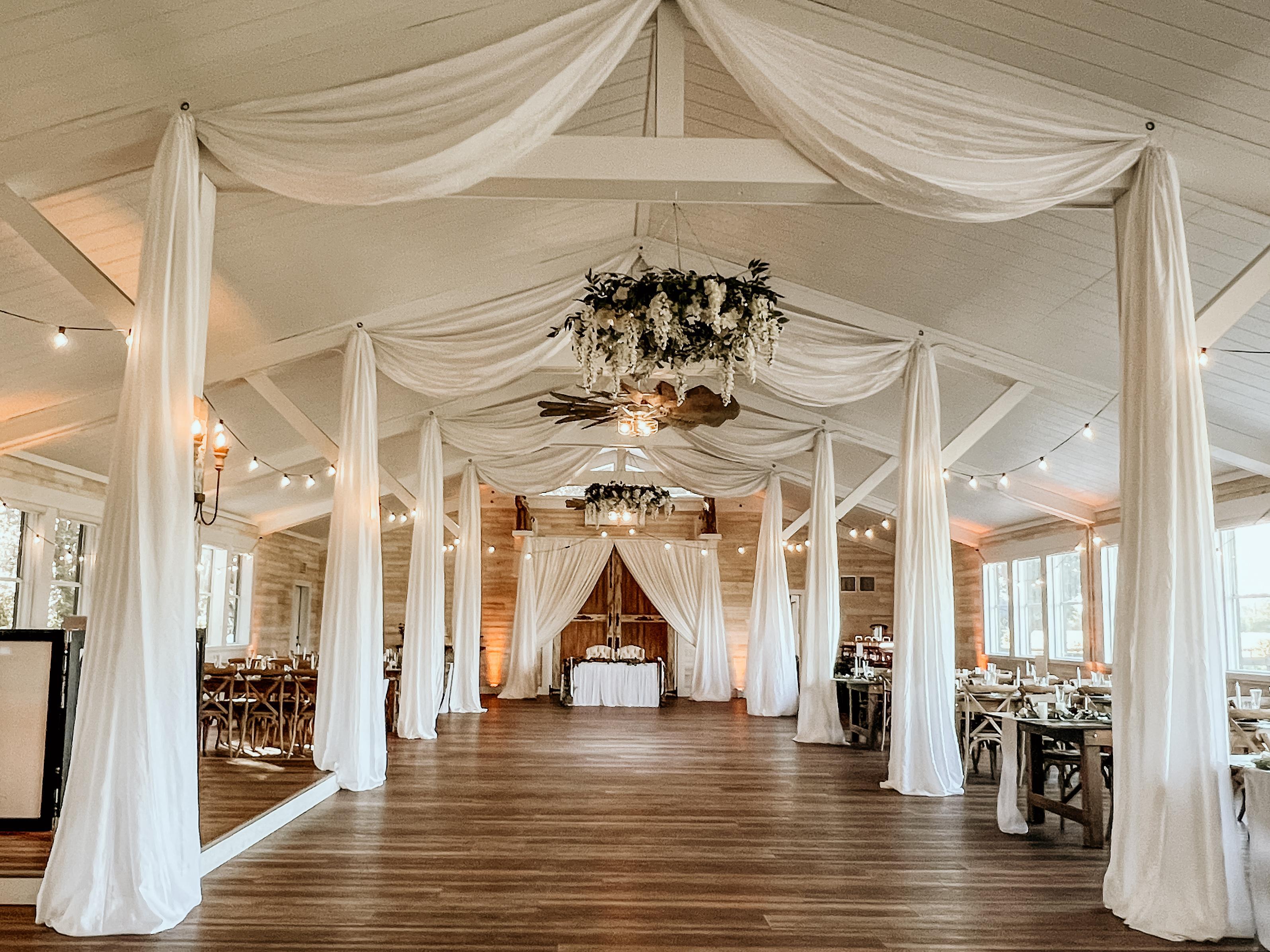 Take a step into the Legacy Barn, a once-six-stable horse barn, now transformed into 3,200 square feet of air-conditioned reception and event space. Seats 140 for dinner. Equipped with a catering prep room, stage, windmill fans, romantic string lighting, wall-to-wall windows for beautiful views and natural lighting for the perfect atmosphere of rustic elegance.