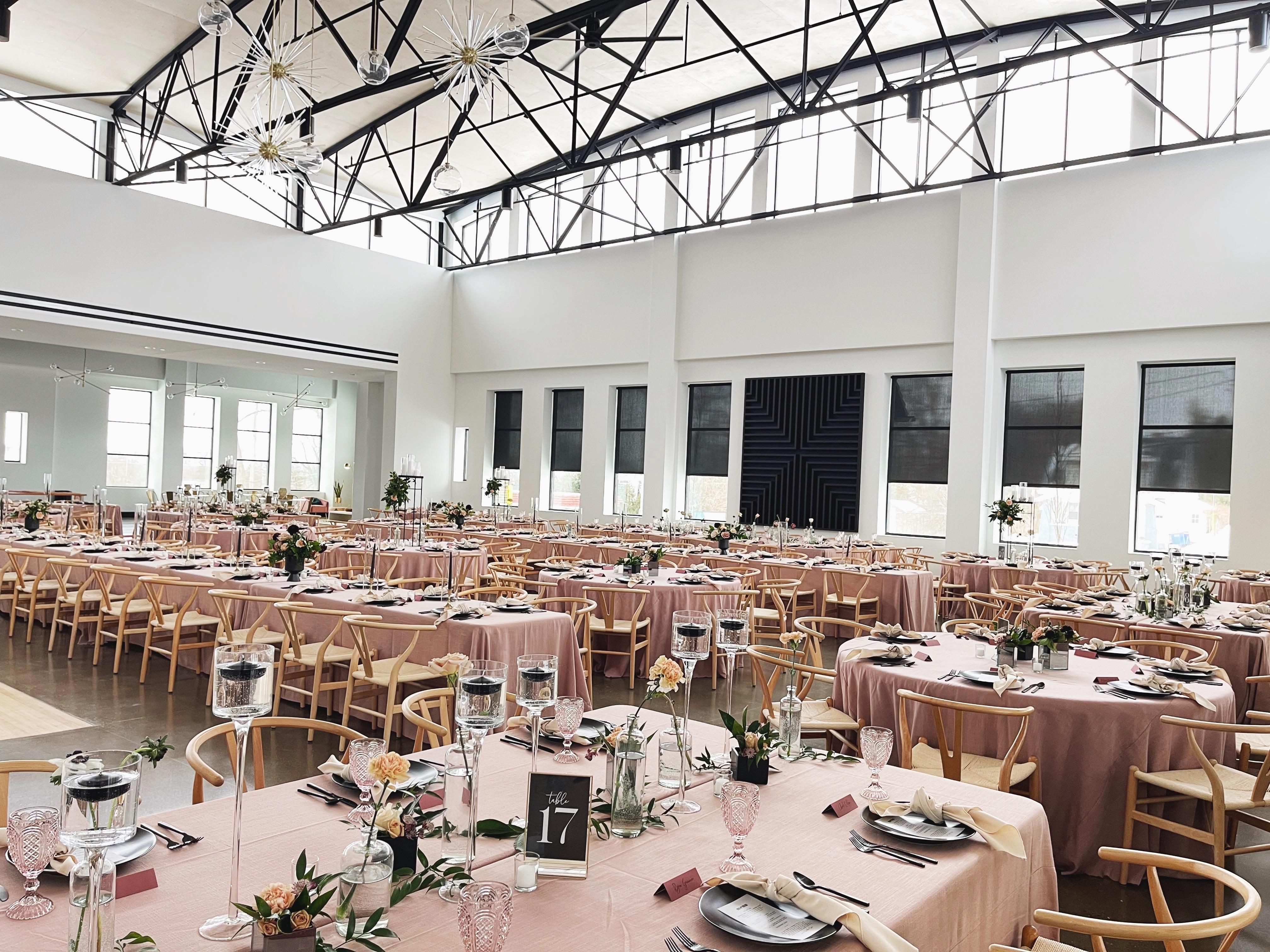 Leona Road is a wedding and event venue with Scandinavian Modern styling. As the walls are packed with windows including a large bay along the natural wood’ barrel roof in the reception hall, the space is flooded with natural light that will look great in pictures. And with 19,000 square feet of indoor space dedicated to your event, a large outdoor terrace and free onsite parking, there is plenty of room to host your wedding for up to 300 guests.