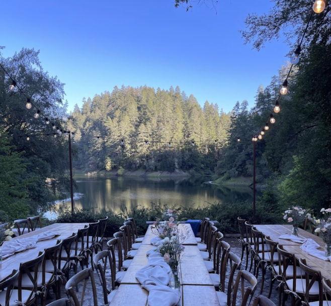 Imagine the serene beauty of the lake and the comfort of the towering redwoods as the backdrop of your union. You and your guests can have an exclusive wedding venue surrounded by a 4,000 acre nature reserve, creating the perfect romantic atmosphere. Leonard Lake Reserve provides your guests with lodging to experience an elevated, summer camp wedding weekend to extend the fun. We invite you to plan your dream wedding at Leonard Lake Reserve. THE VENUE INCLUDES: -Lodging for 61 guests and the capability to have 30 guests camp -Exclusive use of our private estate for your wedding -2 gorgeous wedding ceremony options -Ceremony benches for 100 guests -A deck at the Big House with a built in bar, string lights, tables and heaters for your cocktail hour and reception -Stunning locations for first look and golden hour -Complimentary wifi and onsite parking for 35 cars -Access to our wedding planning partners, Michelle Dakin -Our amazing venue and event coordinators on site