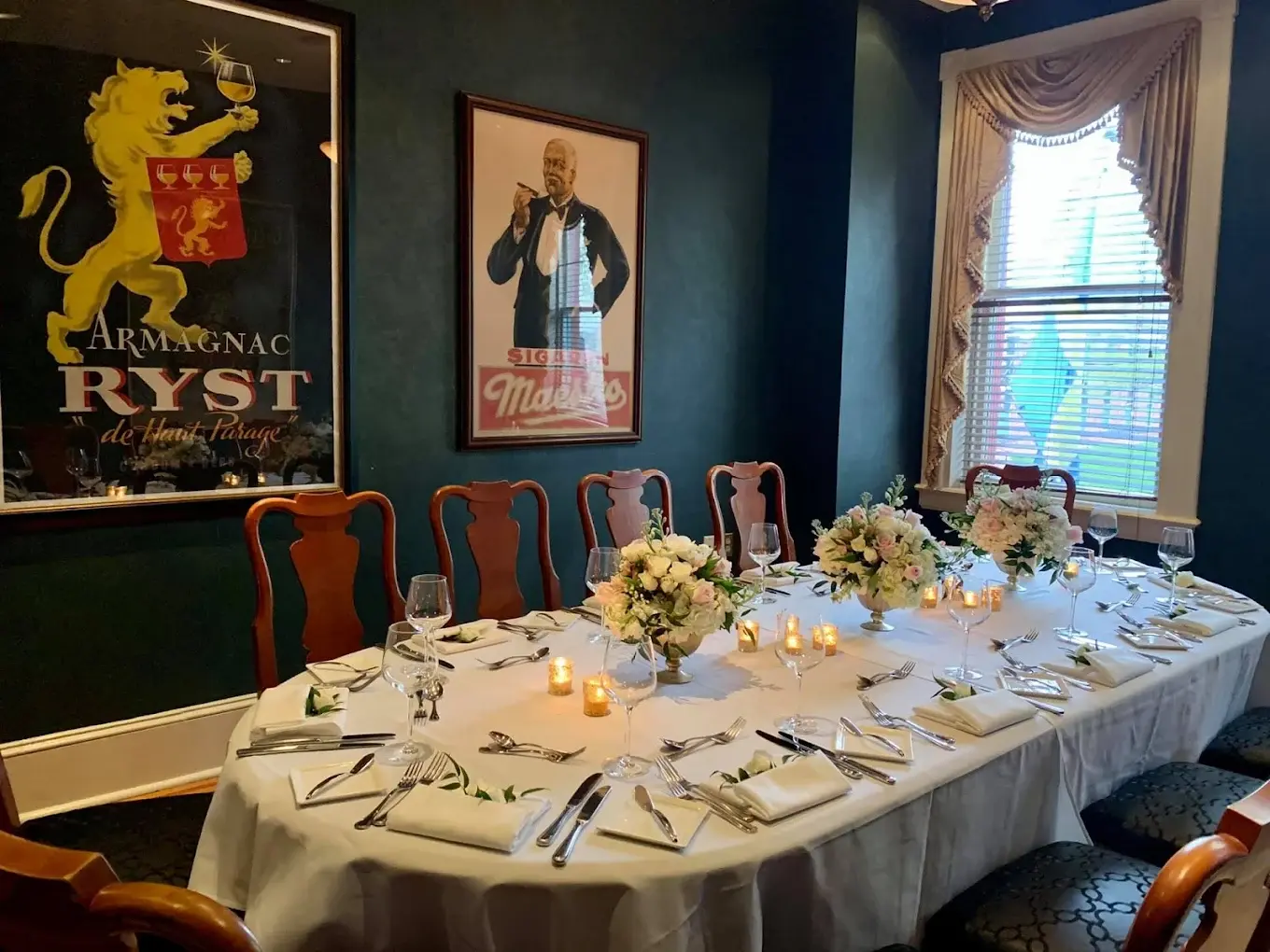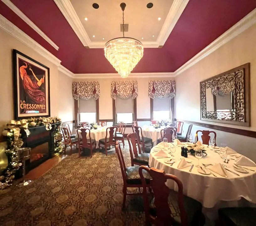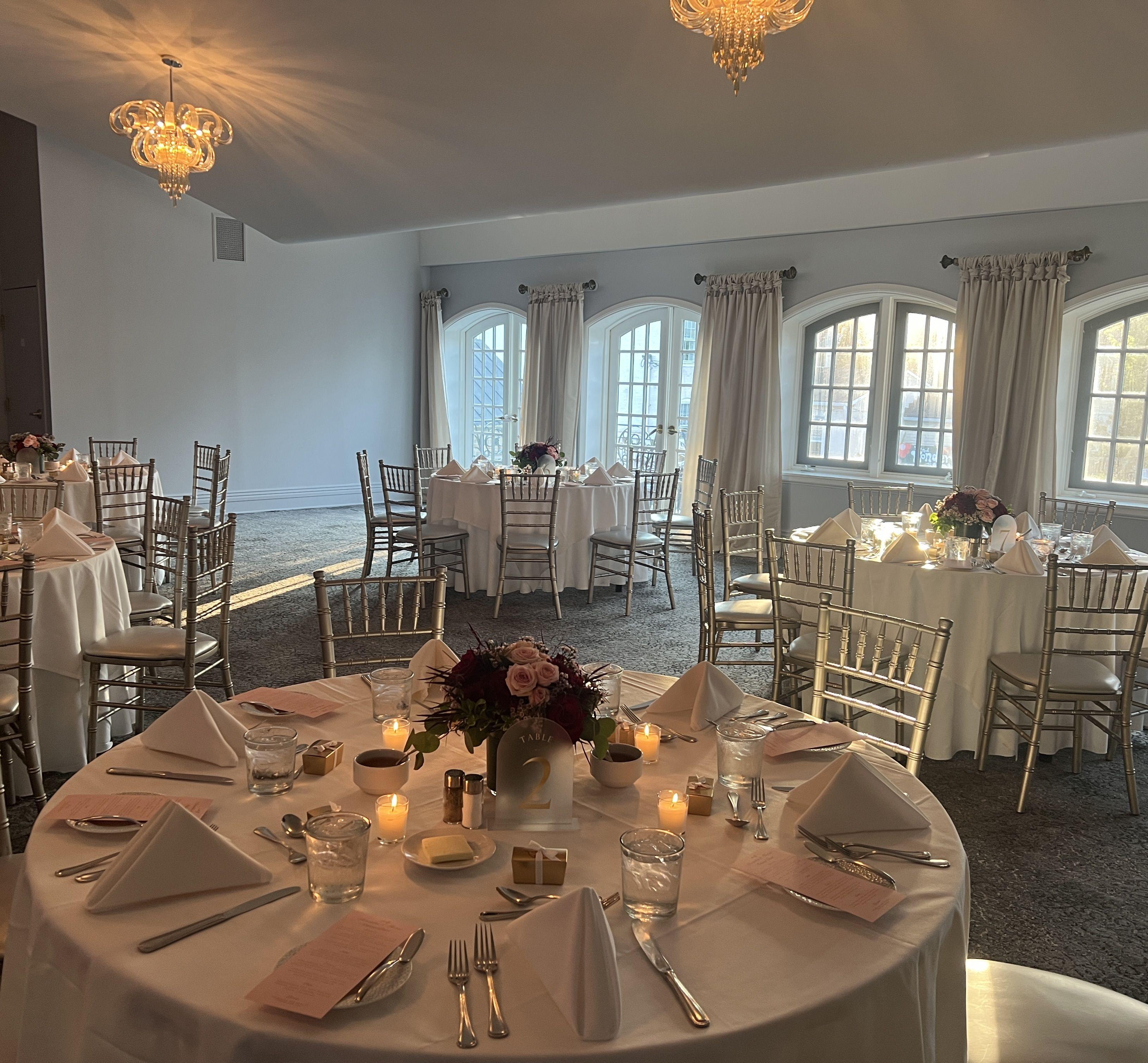 The Marshall Room is the perfect size for an intimate event. The rooms fireplace, large windows and high ceiling offer an elegant setting. Due to the historic nature of our property the Marshall Room is only accessible by stairs.