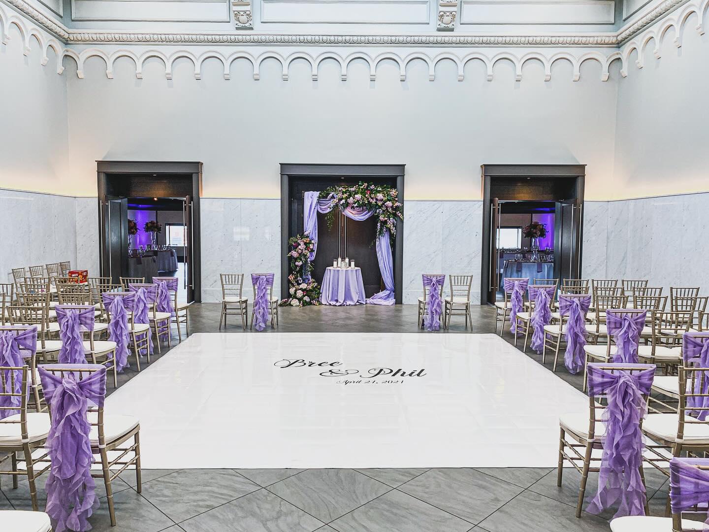 Experience the elegance of Limestone Hall, our premier downtown space located on the top floor of the historic courthouse. This modern venue features two large event rooms connected by a gorgeous dome rotunda, perfect for ceremonies or cocktail hour. We do offer the option here to rent just one of the event rooms or the entire space depending upon your needs and vision!