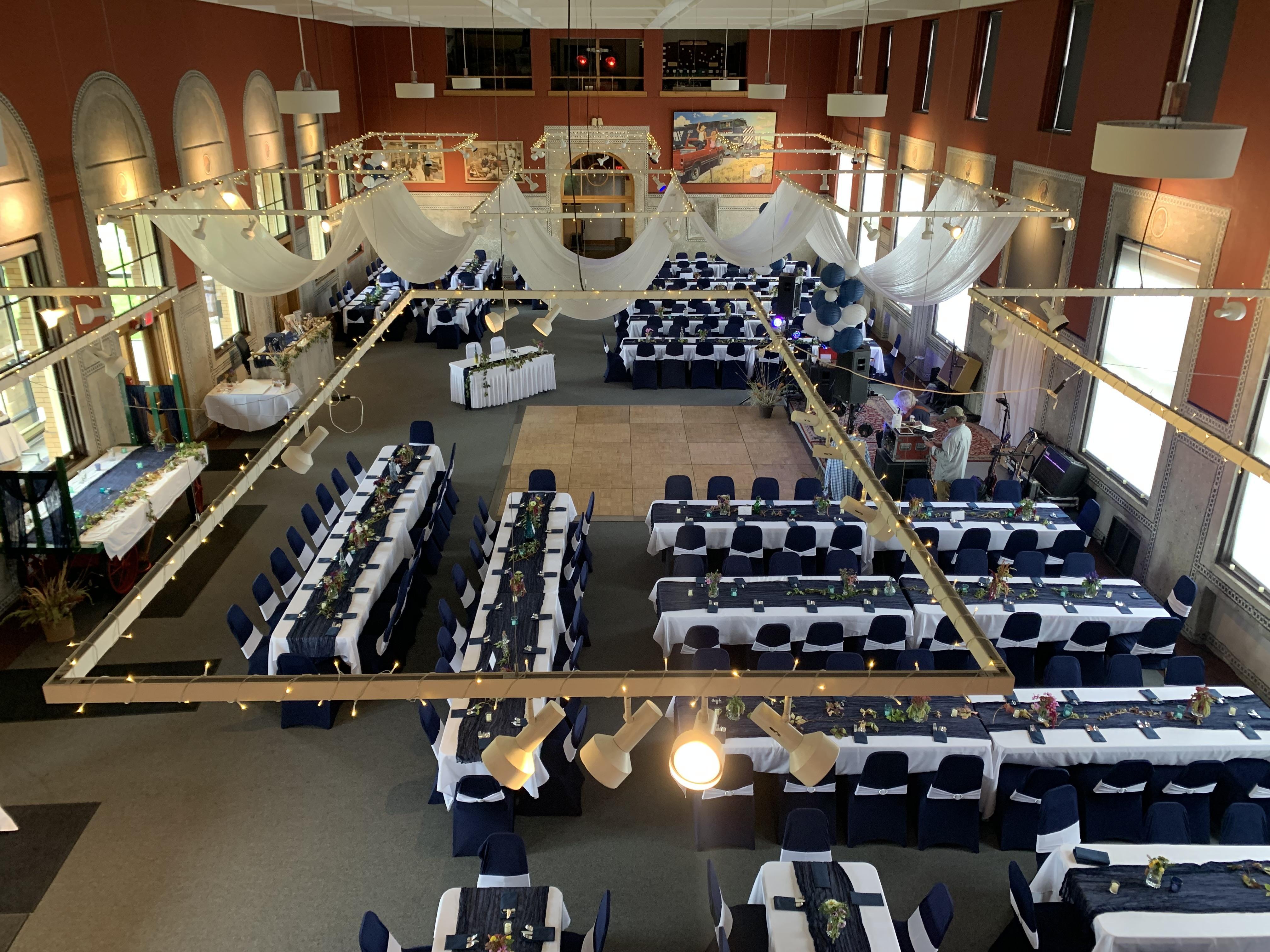 Hosting private events is a breeze at our historic train station. The main atrium can seat up to 300 guests from September through May. During the summer, private events are held in the courtyard and under the original colonnades while the Depot Museum occupies the main room. Hosts are welcome to bring their preference of catering and beverage services. Facility rentals include use of tables, chairs, caterer's kitchen & prep area and PA/microphone.