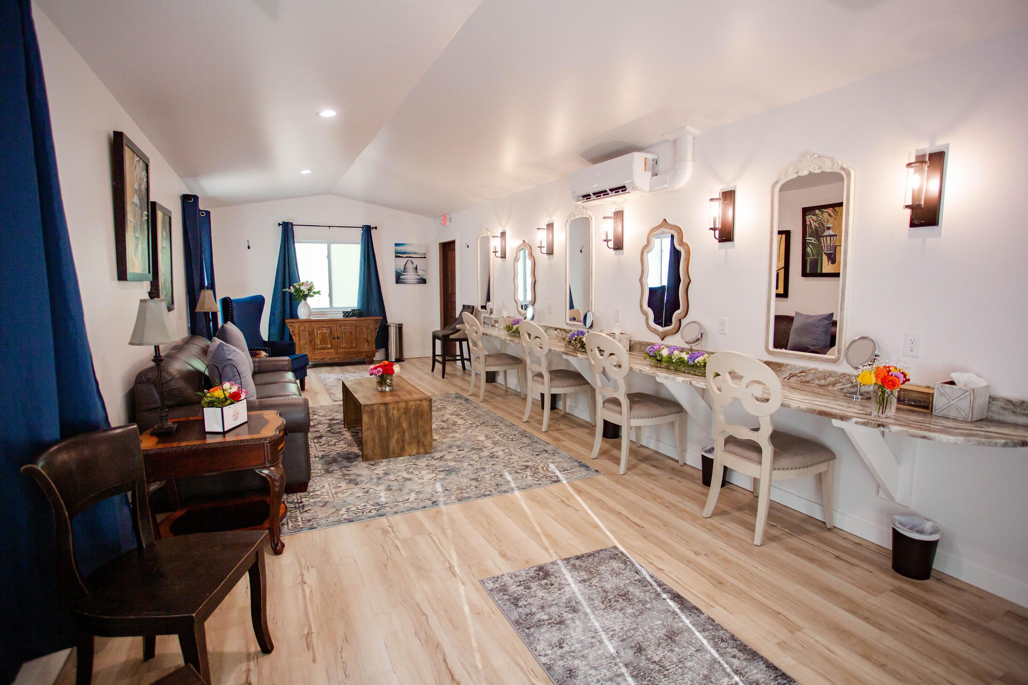 Air conditioning and heating Private access to the women's restroom Seating for 12 Full granite vanity so several ladies can prepare for the event Electricity Emergency supplies i.e. sewing tools, bandaids, tampons, etc. cell phone charging station full length mirror Large dress hooks