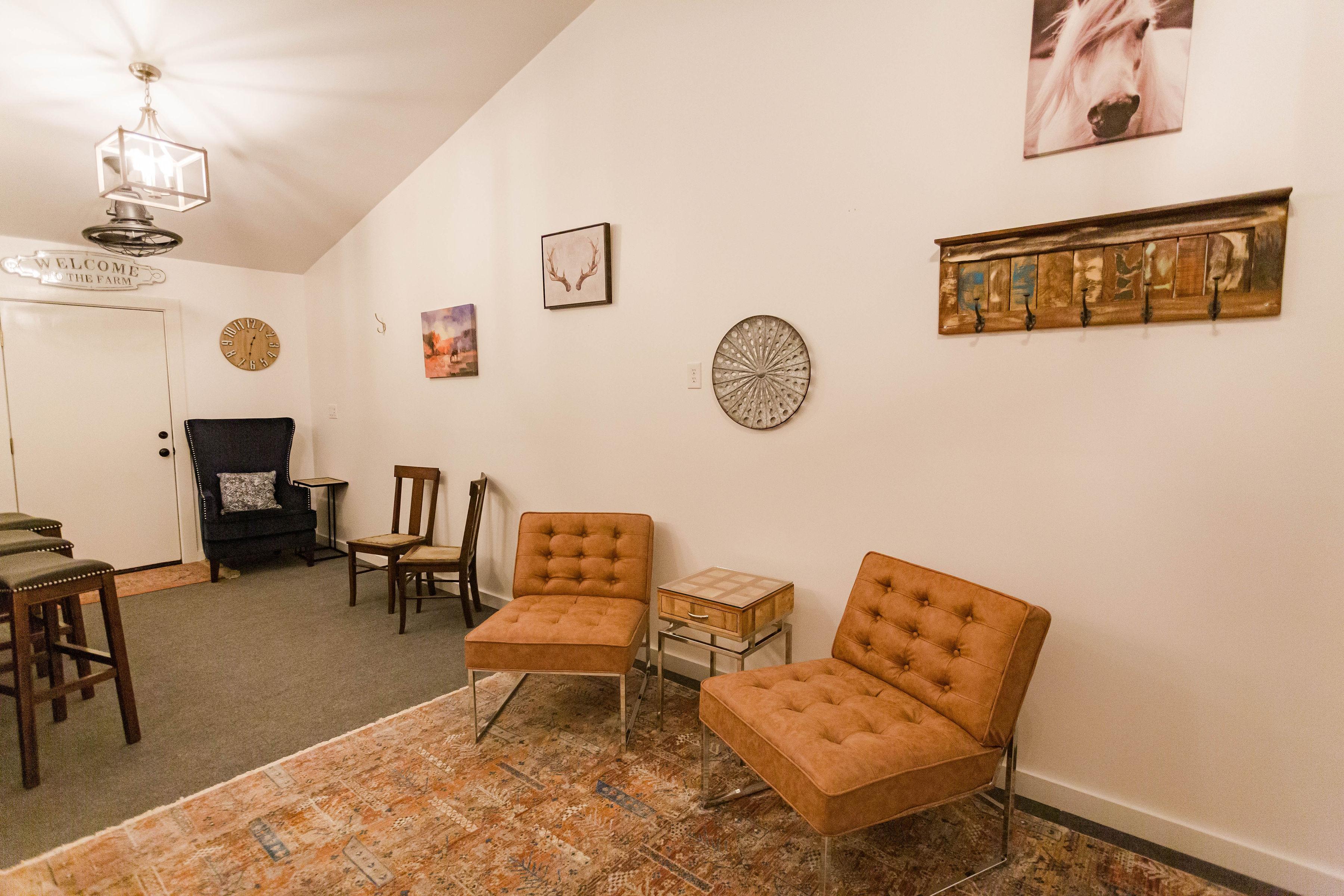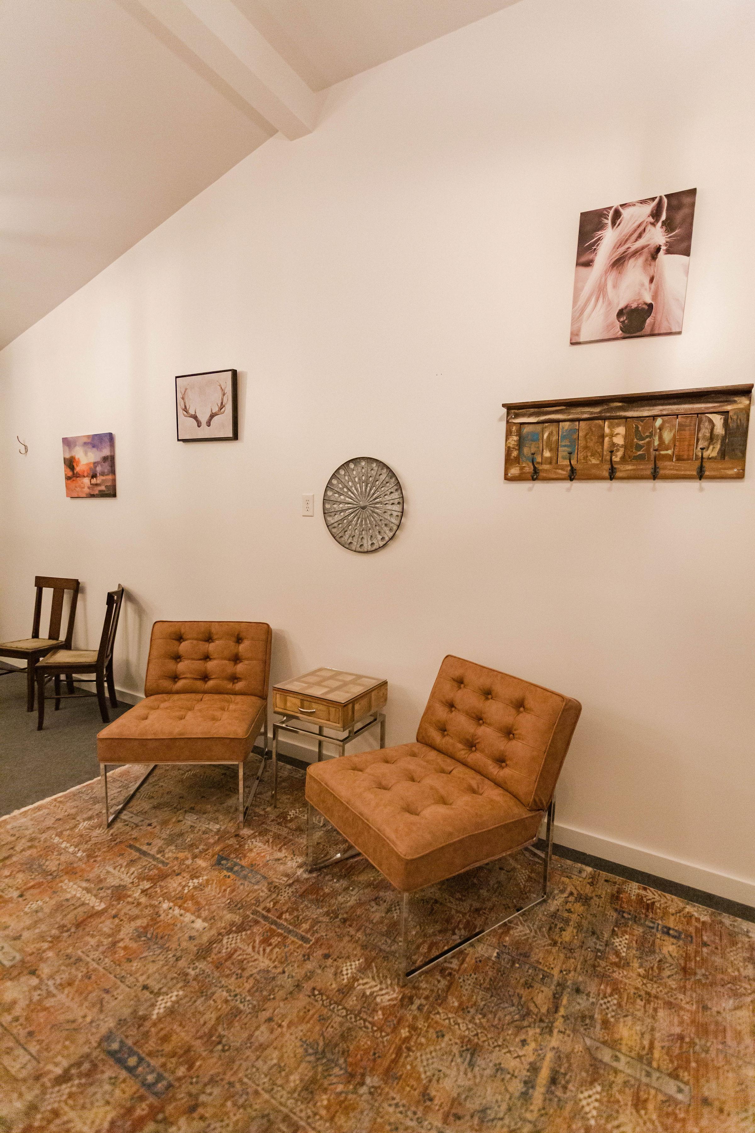 A private space ideal for hanging out and relaxing while waiting for the ceremony to begin. This space accommodates up to 12 people, seated. Included with this space is air conditioning, ample lighting, and use of the Foundry Barn.