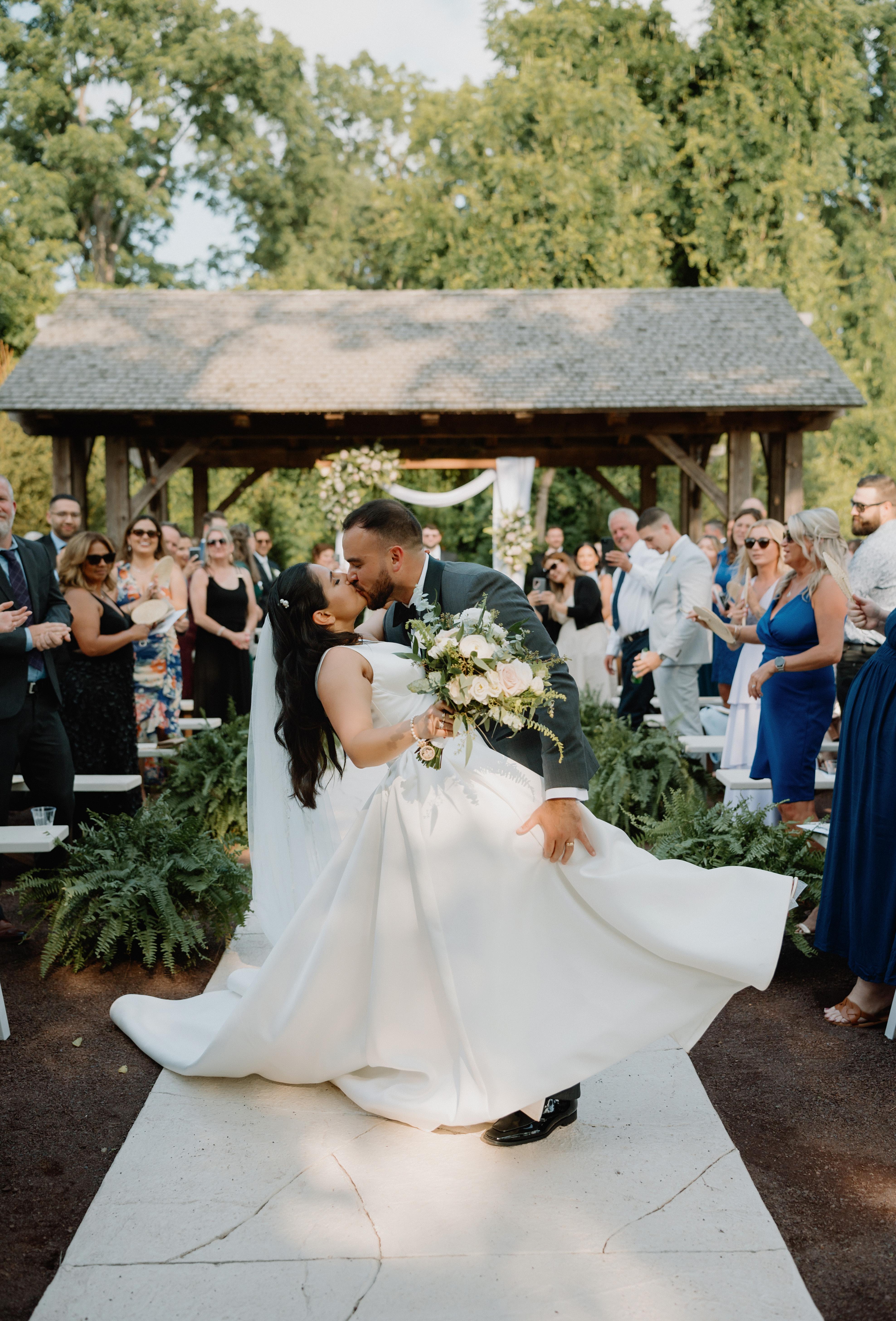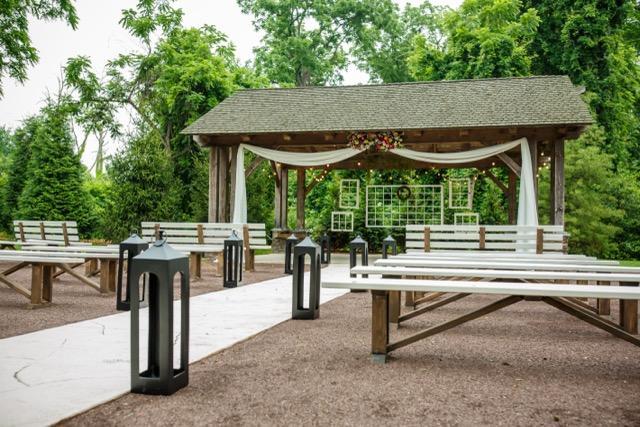 - Spacious covered Pavilion - Hand-Carved Bench Seating - Stone Aisle Walkway - Private Bridal Walkway for Grand Entrance - Seats up to 200 Guests - ADA Accessibility