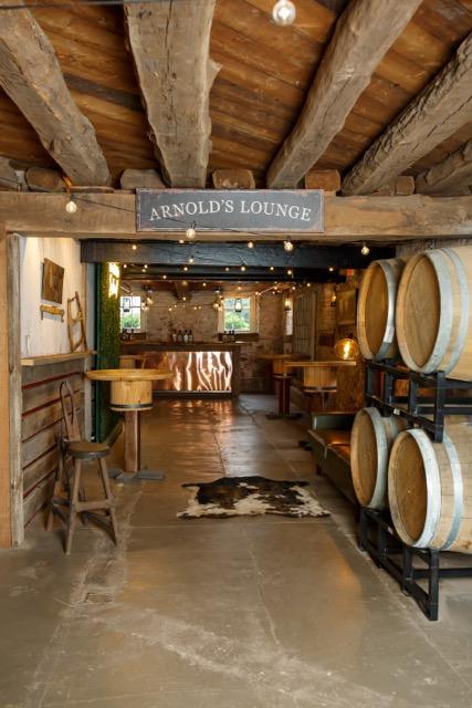 Arnold's Lounge - a cozy, prohibition-style barrel room perfect for cocktail hours and stylish gatherings.