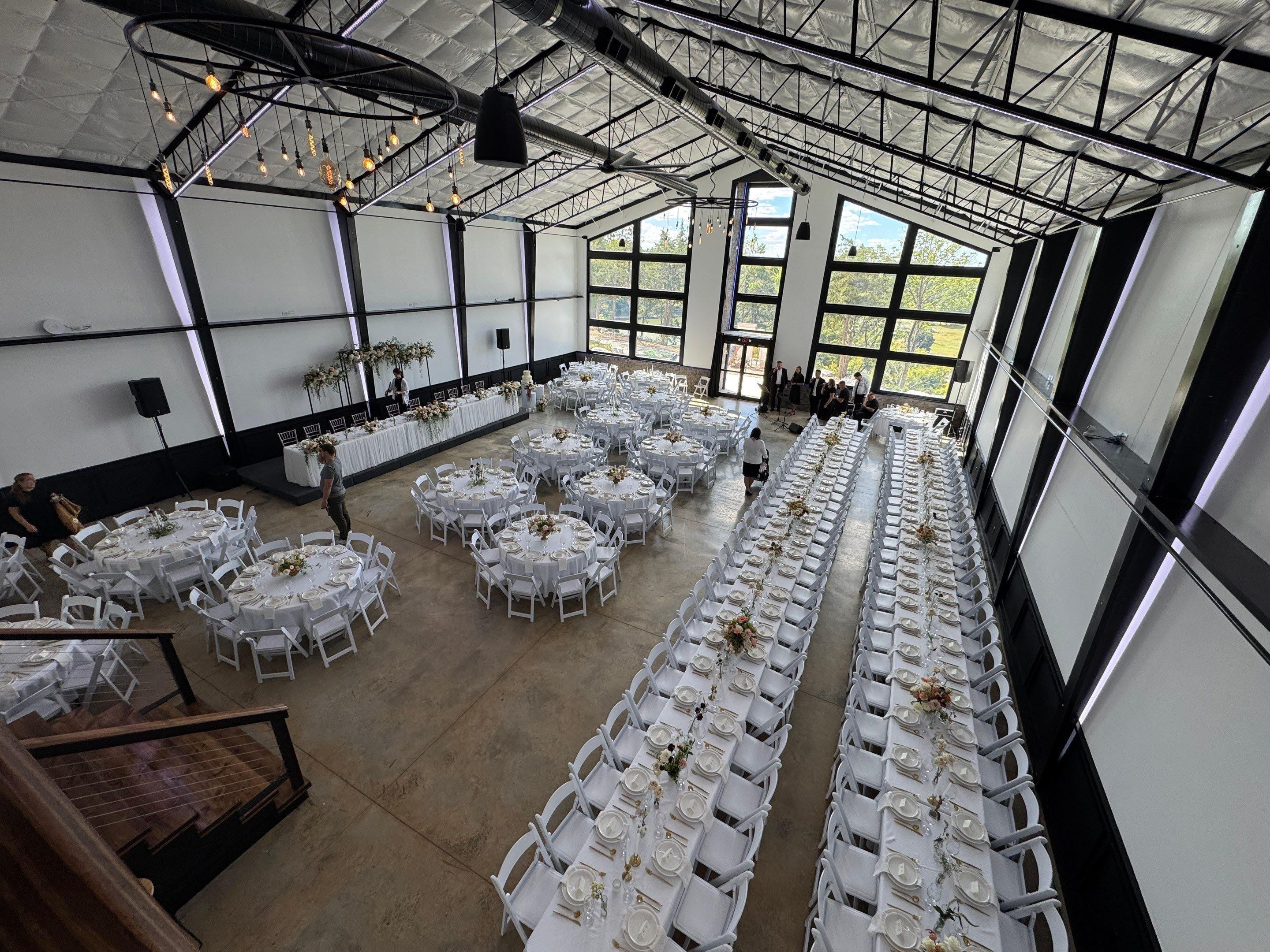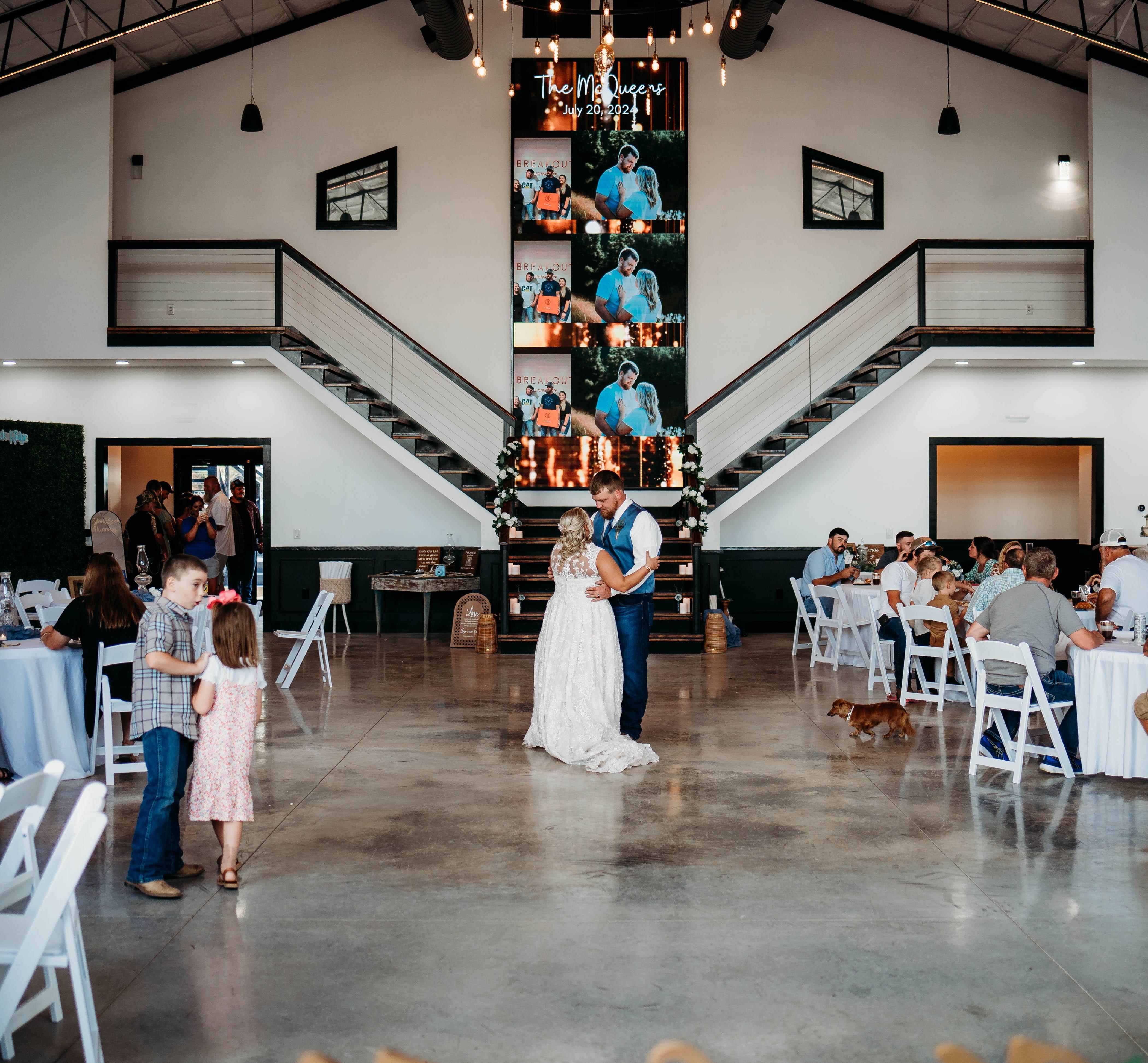 Our venue offers year round comfort with climate controlled spaces, perfect for both summer and winter weddings. We also feature on-site glamping options for a unique guest experience and a customizable video wall to showcase engagement pictures or special moments. Plus, with food truck hookups, you have the flexibility to choose your favorite catering options for your big day!