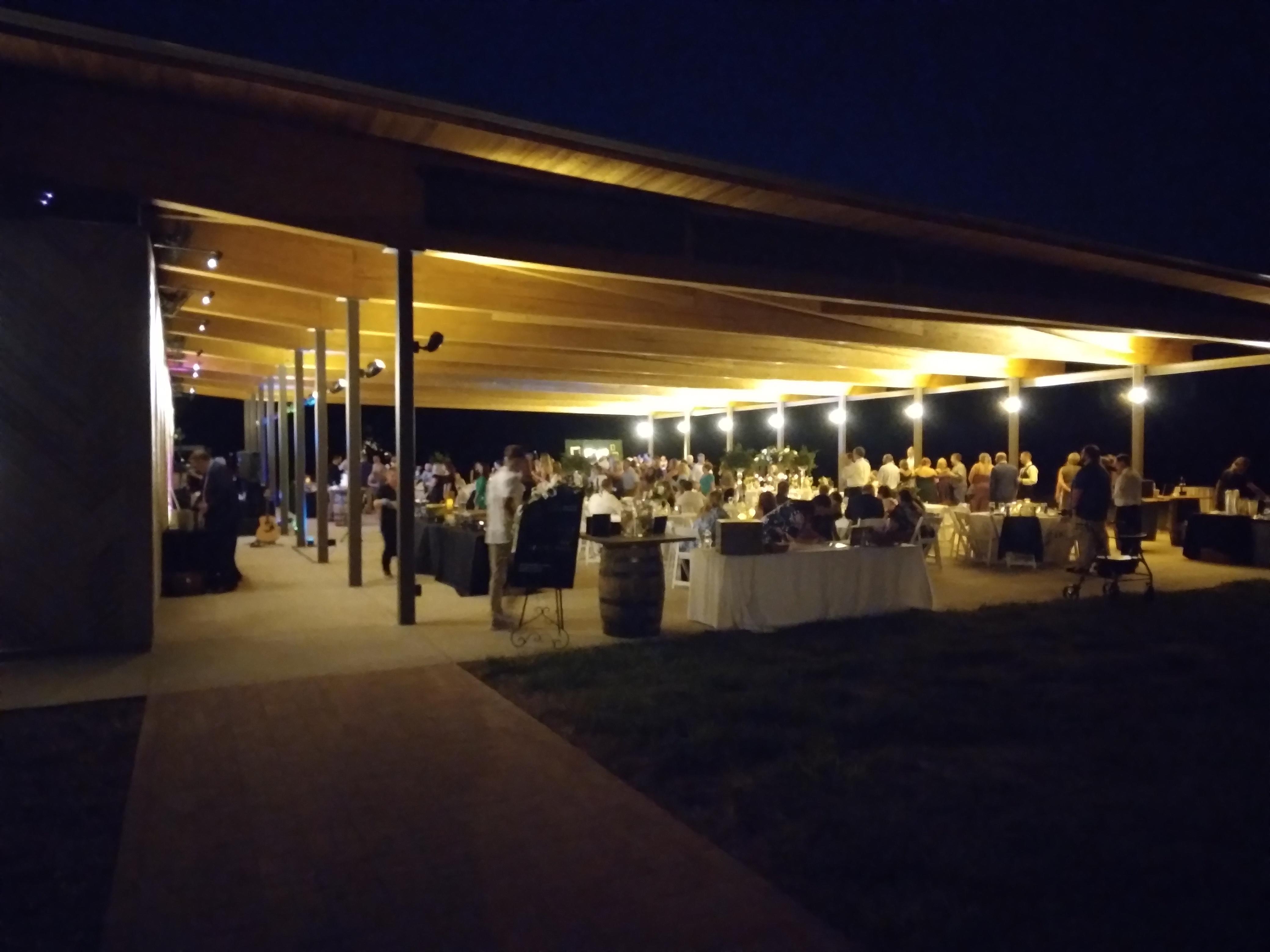 The shelter is covered with a roof of broad beams arranged to mimic the distinctive bark of the Honey Locust trees Locust Grove is named for. Limestone chevrons on the west wall echo the angles in the trees and recall the importance of limestone in this area. The pavilion includes ample electrical outlets, lighting and fans. The space in the pavilion is great for wedding receptions of up to 250 guests, or even for a smaller wedding and reception in one space.