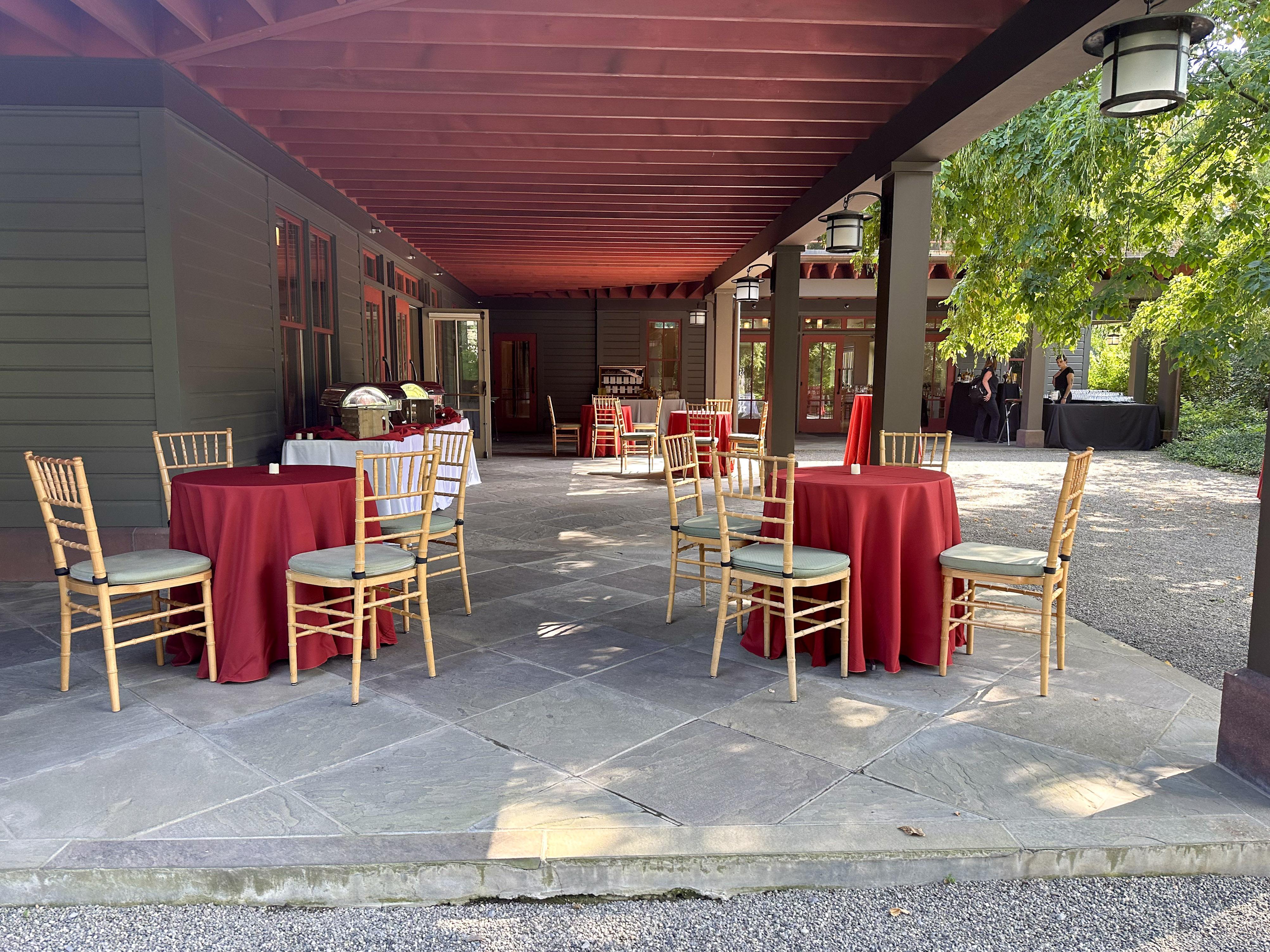Our covered terrace and shaded courtyard make the perfect space to host your cocktail hour. With plenty of room for food displays, high-top tables, and a bar, it creates the perfect segway between the ceremony and the reception. Then once the party is in full swing it creates a space for guests who may need to step away from all the action or just get some fresh air.