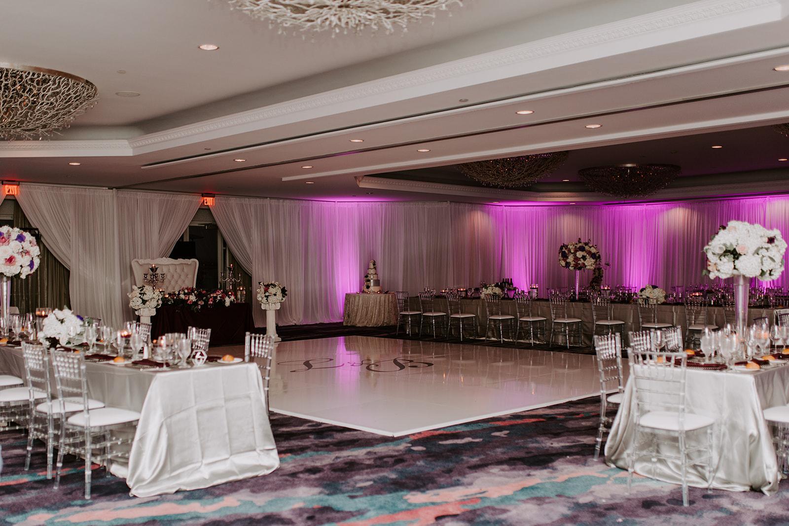 Beautiful Light & Marina Views. With natural light flowing from several floor-to-ceiling windows, this magnificent room features crystal chandeliers, crown molding and a private terrace overlooking the resort’s marina and pools. It features 5,162 square feet and is divisible into two sections.
