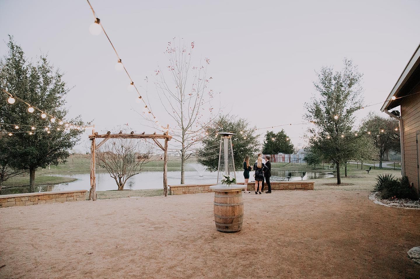 The back patio is both tranquil and intimate with a water-front arbor just waiting to be adorned with floral.