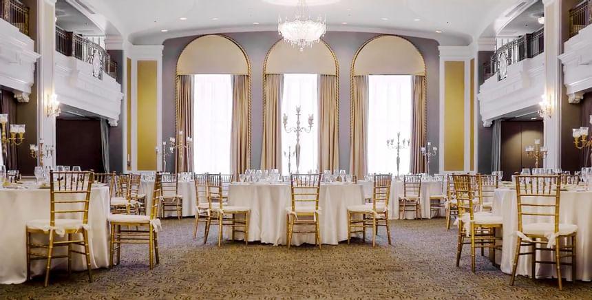 Magnificent architecture and graceful, timeless interiors set the Lord Baltimore Hotel among the most romantic and unforgettable wedding and special event venues in the heart of downtown Baltimore. Since 1928, we’ve been one of the city’s premier destinations for a gathering to remember. Offering warm, gracious hospitality, experienced and professional wedding design and majestic, beautifully preserved interiors steeped in our building’s late 1920’s charm, we offer a dramatic backdrop for everything. Our decadent Calvert Ballroom showcases three Baccarat crystal chandeliers, a lofty ceiling with soaring windows, and a gorgeous balcony perfect for cocktail hours and bouquet tosses. Perfect for more intimate weddings and parties, our Versailles Room showcases lofty ceilings with three stunning chandeliers and grand windows in the style of the Palace at Versailles, sure to add regal charm and elegance to any gathering.