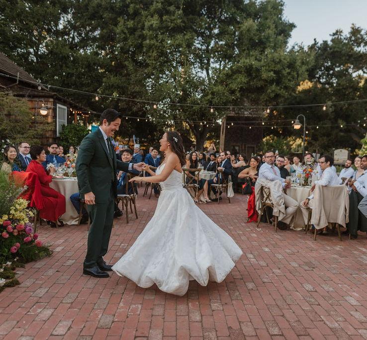 Bride’s Perspective Our wedding was a candlelit pizza party in the garden—casual, approachable, and elegant all at once. About 80 guests came. The ceremony was under the tree near the entrance. During cocktail hour, some guests (especially families with kids) enjoyed docent-led tours of the house. For dinner, we seated everyone at two long banquet tables on the bricks. While a lot of us were dancing inside, guests also gathered outside around the heaters under blankets we provided. The venue’s gardens and old trees meant we needed very little décor — we went with some DIY Trader Joe’s flowers & lots of candles. When the sun set, the glow from the candles and string lights provided by LAHM was magical. One highlight was cutting the cake at the end of the tables, looking out at our laughing, candlelit guests. We expected warm October weather, but the forecast dipped into the low 60s. Propane heaters worked perfectly, and combined with candles, lights, and blankets, the night felt intimate and warm. We live close to the venue and got ready at home, which turned out to be ideal—relaxed, convenient, and comfortable. Before planning, I imagined a rustic barn wedding, while my husband wanted something elegant. The museum was the perfect balance — and better than either of us pictured. Working with Lisa was wonderful. She was professional, responsive, and calm from the first walkthrough through the end of the night. I enjoyed checking in with her throughout the event, and everything ran smoothly. We trusted her recommendations and appreciated how she coordinated with all our vendors. We joke that if we ever got married again, we’d do it all the same — same space, same people, same Lisa! Groom’s Perspective We knew our venue search was over when we found the Los Altos History Museum. Lisa, the venue coordinator, not only manages a beautiful space but also brings clarity with straightforward policies and transparent pricing, which gave us freedom to design the day exactly how we wanted. The event moved naturally through the property: ceremony under the trees, cocktails near the house, dinner on the bricks, and dancing inside. It felt private but accessible, and the gardens were perfect for photos. My favorite moment was watching the sun set over dinner as candles and string lights took over. Lisa was fantastic — responsive, flexible, and organized. She met with our vendors in advance and made space to store supplies several days ahead of the wedding. She was the first to arrive and last to leave. She even helped pack our car at the end of the night. A few notes for future couples: there’s limited getting-ready space (we used our home, which worked great), tenting for rain can be tricky and expensive, and there’s no commercial kitchen. None were issues for us, and Lisa explained these points to us early so there were no surprises. Vendor List: Coordinator: Taylor Rae Weddings Catering [Appetizers, Dinner]: Gigi mobile wood-fired kitchen Catering [Service, Setup, Breakdown, Bar]: Heirloom Catering Co. Wedding cakes: Draeger's grocery store DJ: DJTN Photography: Doug Despres - Amari Productions Rentals: Charis4Events Hair & makeup: Dreamcatcher Cocktails: His: Paper Plane Hers: NA Paloma w/optional tequila
