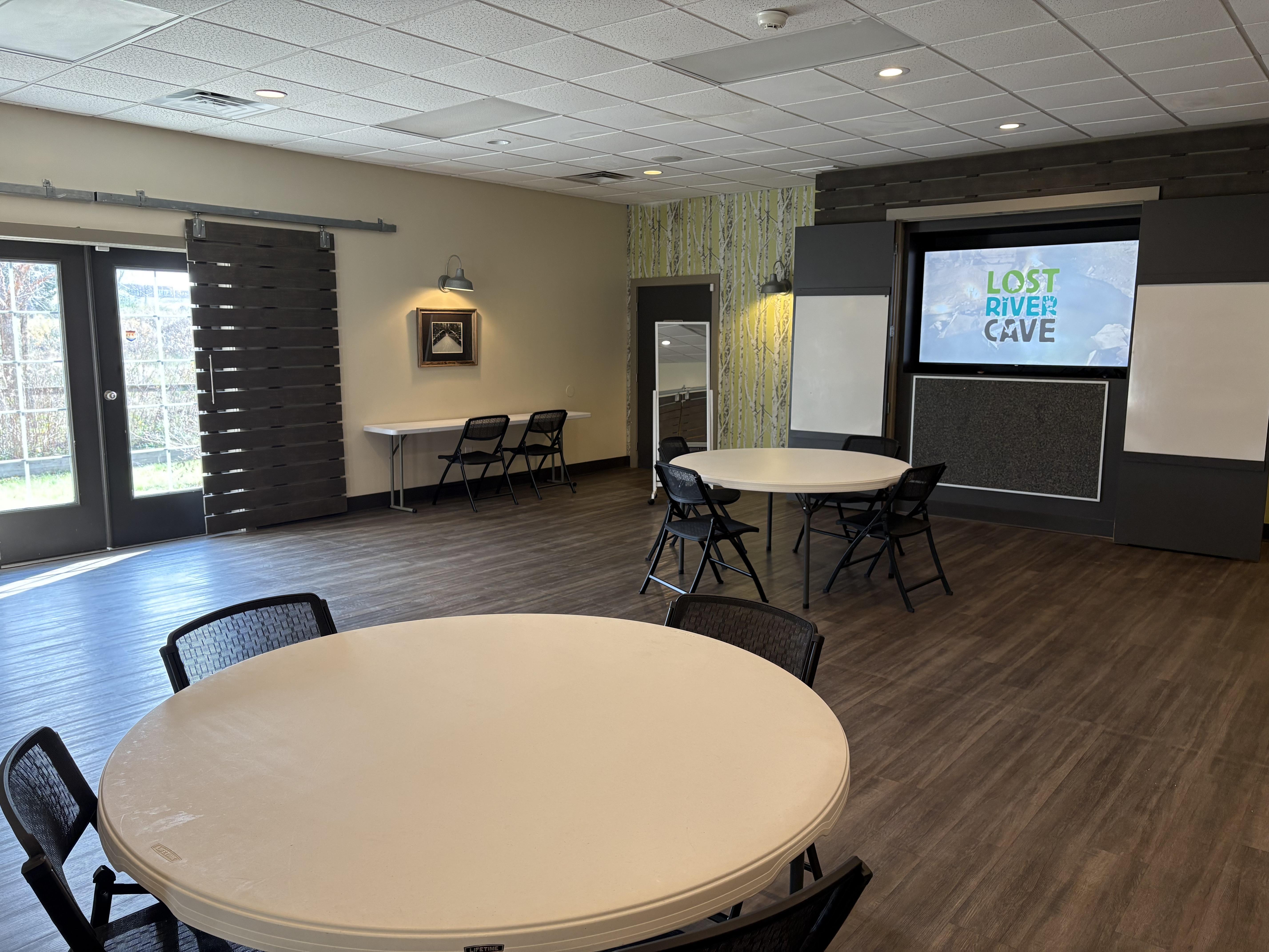 Lost River Cave’s River Birch Room is the ideal space to host your bridal or engagement party. The room is able to accommodate up to 60 people and includes private restrooms, a kitchenette, tables and chairs, and audiovisual equipment.
