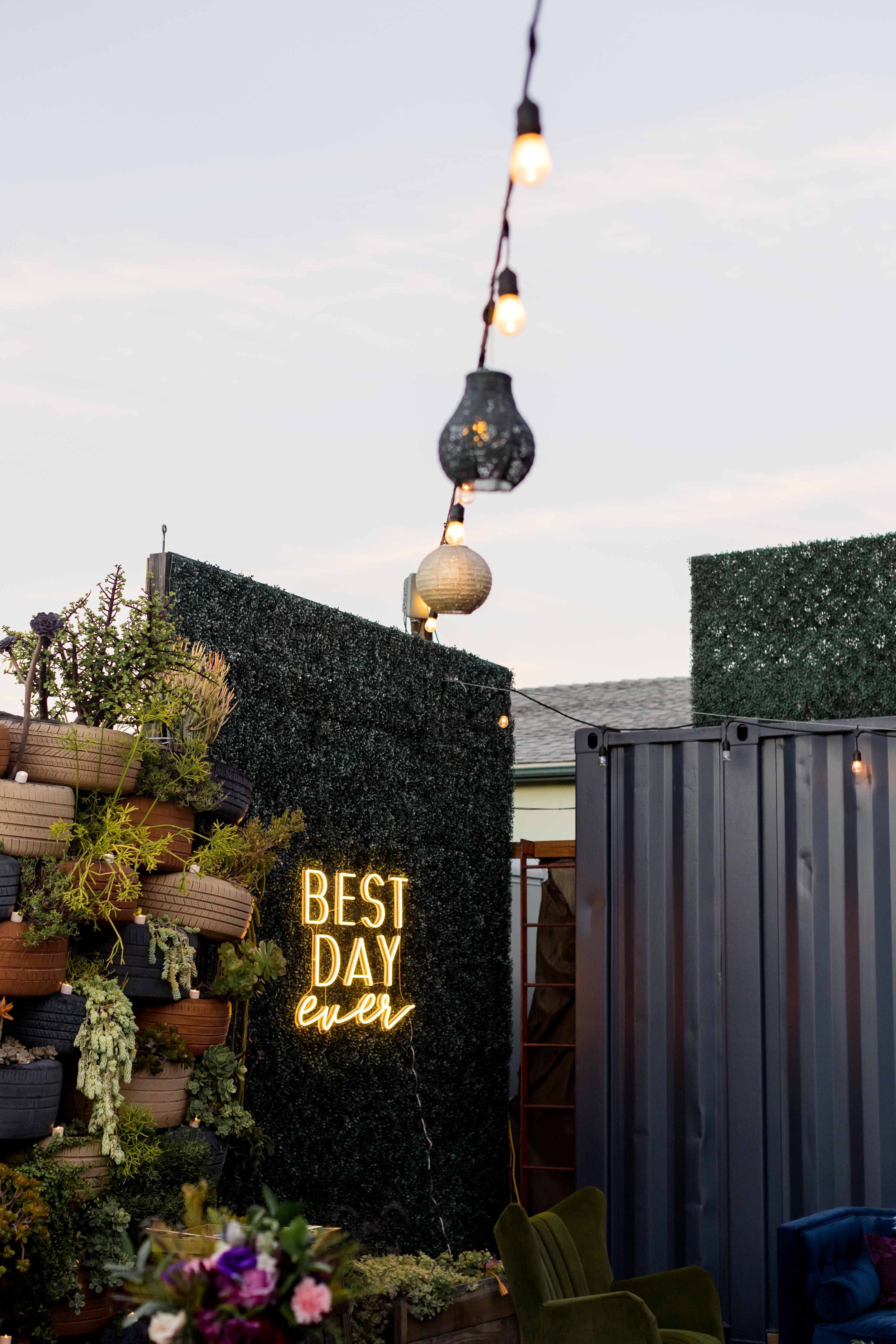 Party under the palms of Lot 8, a modern, unique, open-air wedding venue in central San Diego. The location is a hidden gem that comes to life with living walls, cool and exciting repurposed furniture, and boho chic decor. Our cutting edge inclusive wedding package makes wedding planning come to together in a stress-free way so you can enjoy the wedding journey 100%. Featuring an outdoor space located in an open lot area with a beautiful covered area for reception, Lot 8 is a flexible and customizable floor plan allowing you to envision your event layout in any way you'd like!