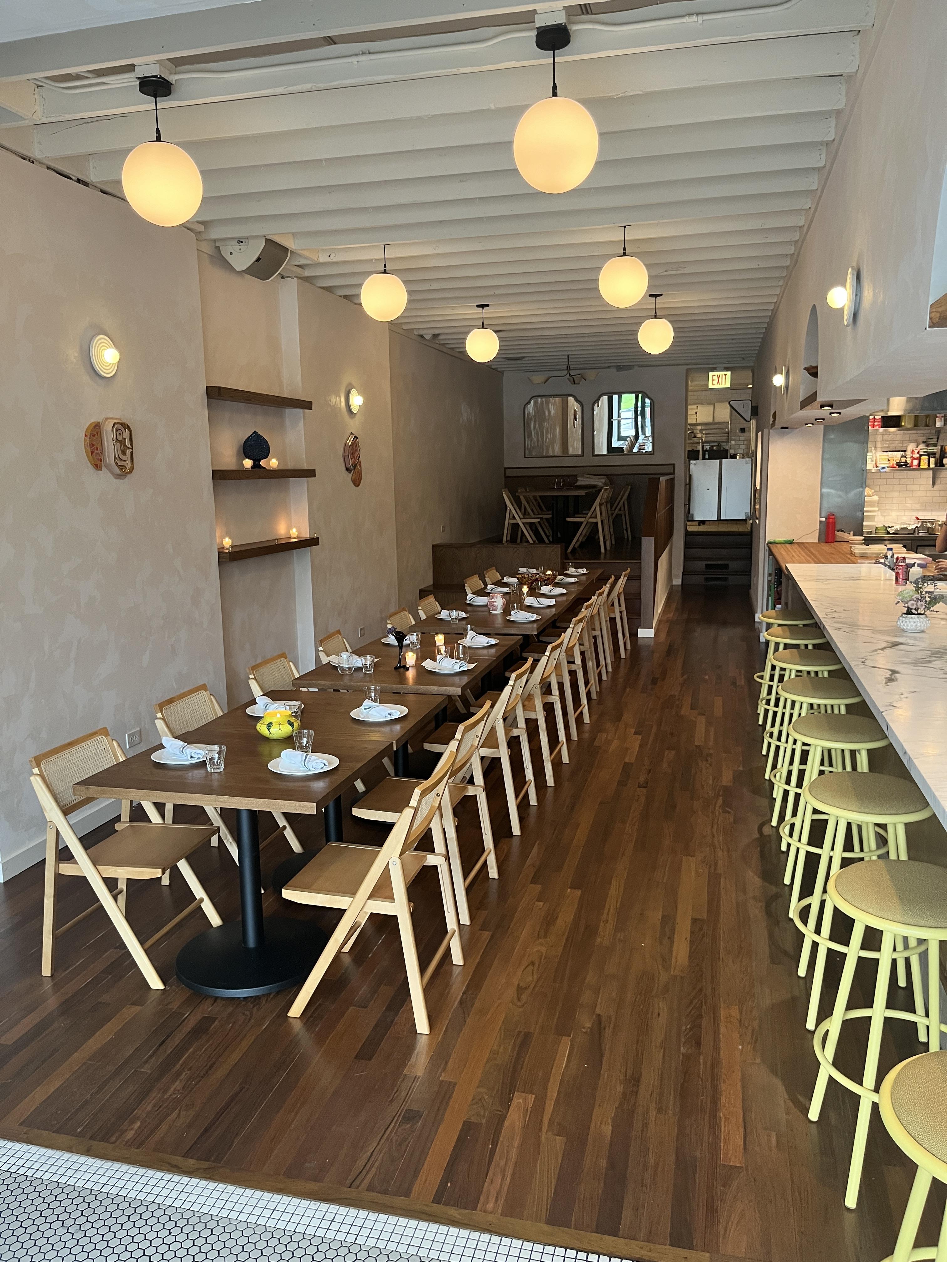 LOULOU features seating for 40 guests with options for a plated or family style menu. The space can also be transformed to accommodate cocktail-style receptions for up to 75 guests. Our front windows fully open to our patio, creating an option for an indoor/outdoor space.