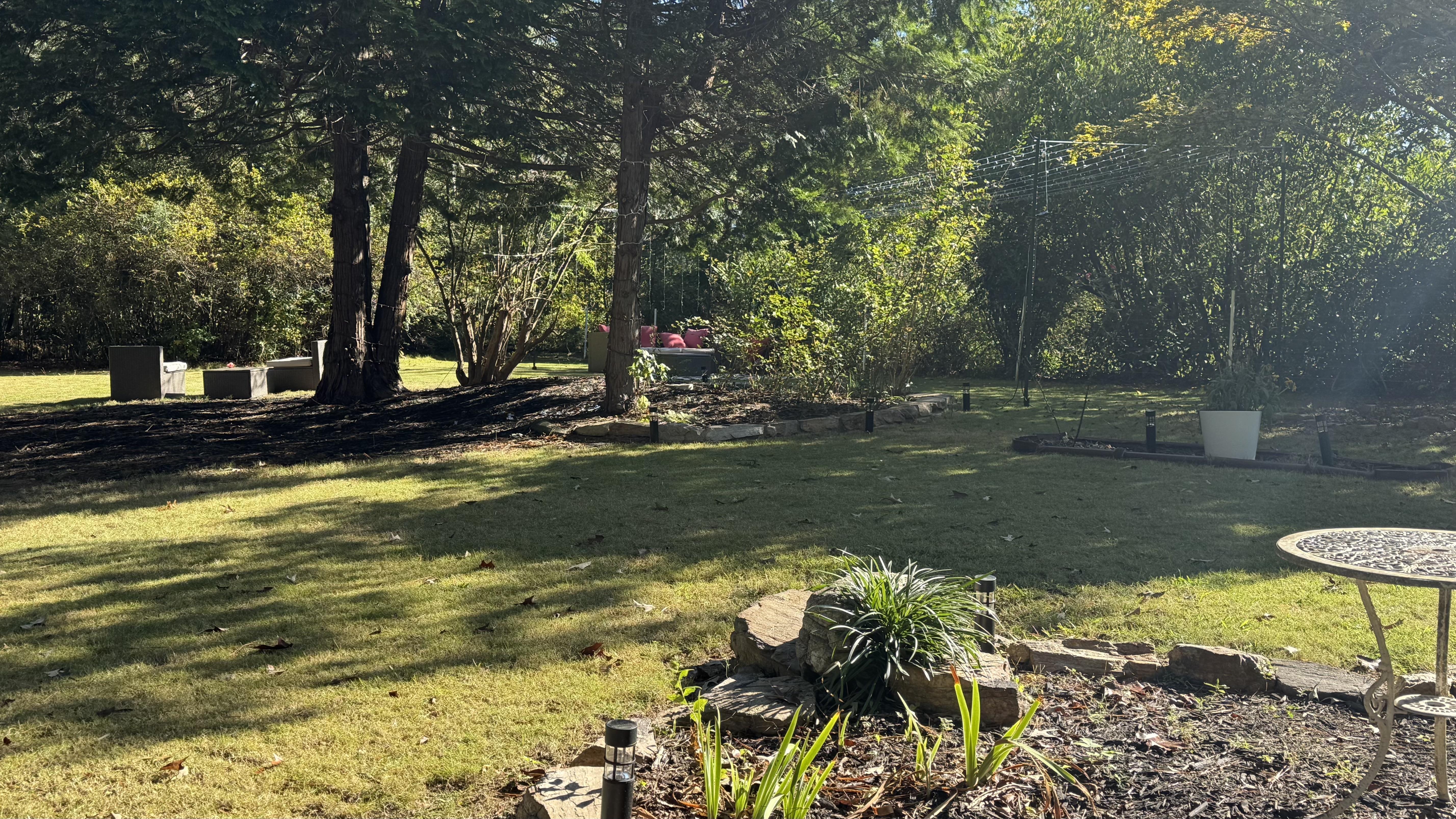 This is a 4,000 sqft rectangular shaped lawn area at the front of the farm with a pathway access to the main house and the secluded garden.
