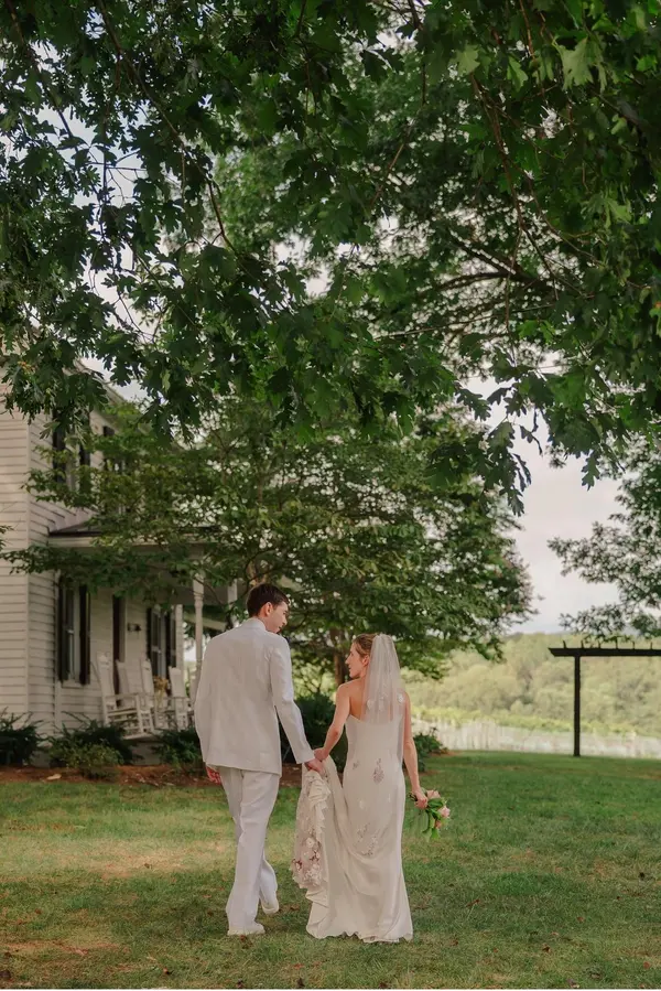 This venue couldn’t have been more perfect. The venue really makes the wedding and I’m so glad we picked Lovingston Winery! It was such a treat to have the farmhouse, cabin, and the Tupelo house for the whole weekend. I loved how the venue felt like it tucked up against the woods and had such pretty views of the rolling hill in central VA. The farmhouse was so cozy and fit my entire family for the weekend. We loved drinking coffee underneath the trellis and looking at the mountain views. The big bridal suite was perfect - the photos I have in front of the giant bay windows look so ethereal. I also loved the shower! The wall jets were so luxurious! Walking from the farmhouse to the ceremony spot (we picked by the Tupelo house) with my parents was such a special moment. I’m glad we never had to drive anywhere. My husband stayed in the cabin on Friday night and we used it as our honeymoon suite on Saturday night. Similarly, it was so easy to escape back to our cabin in the woods from the reception. The Tupelo house was so spacious and beautiful - we loved the fireplace, the big wooden beams, the rich rugs, and giant barn doors. We opened the barn doors up for the mountain views even though it made the room a little warm for dancing. It was worth it to feel like we were bringing the outside in and so that our guests could wander and mingle outside (my brother-in-law brought cornhole boards, which folks actually really enjoyed!). Our guests loved the rose! Tessa and Wes were both so responsive and helpful. My mom accidentally broke the garbage disposal on Friday and they showed up immediately and fixed it (don’t put entire vegetables down the garbage disposal). They’re so kind and easygoing, which is much needed energy for a wedding weekend. I’m so grateful we picked Lovingston and had the venue Friday to Sunday morning - the weekend already goes by too quickly. My only regret is that we didn’t book the farmhouse AirBnB for Thursday night!