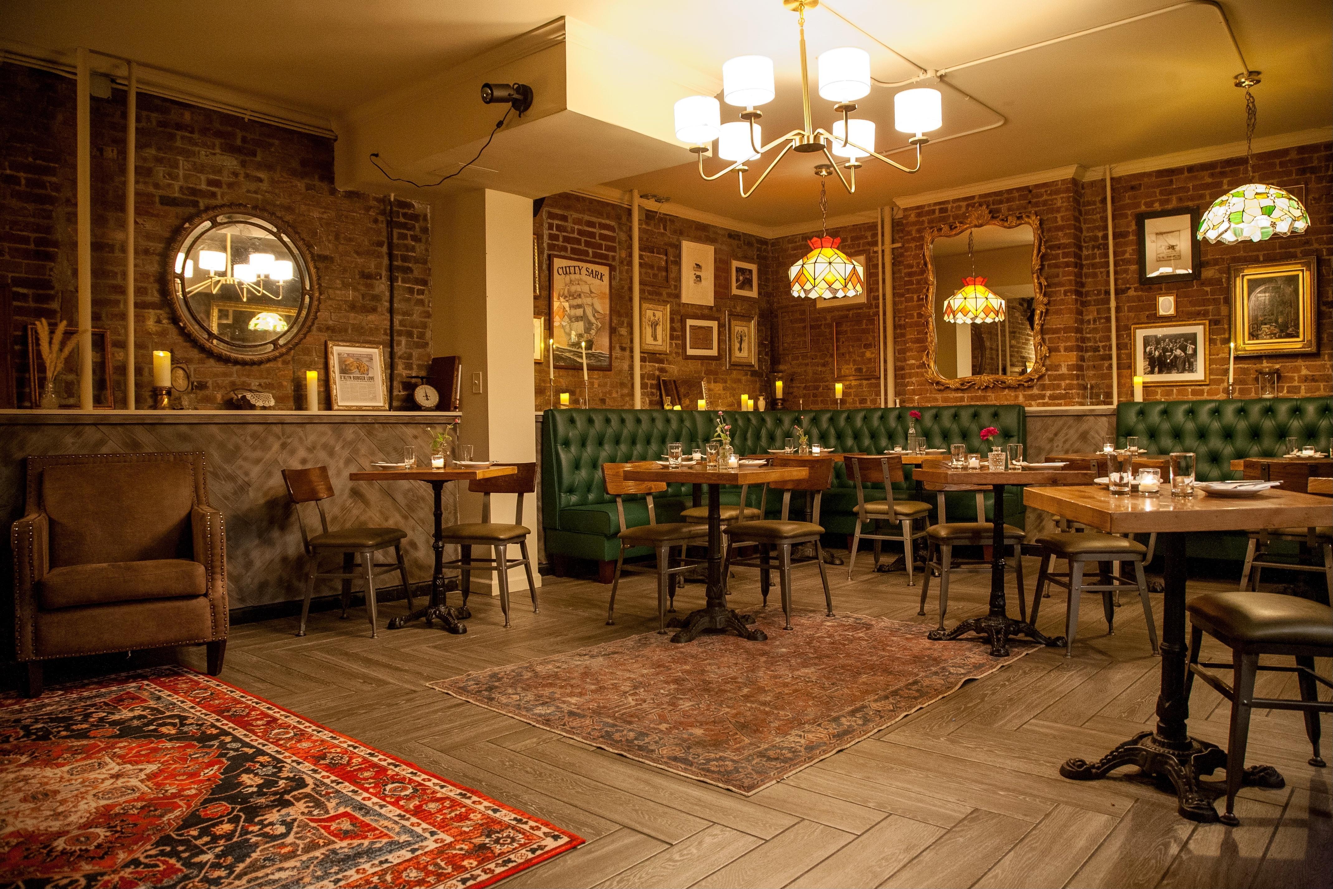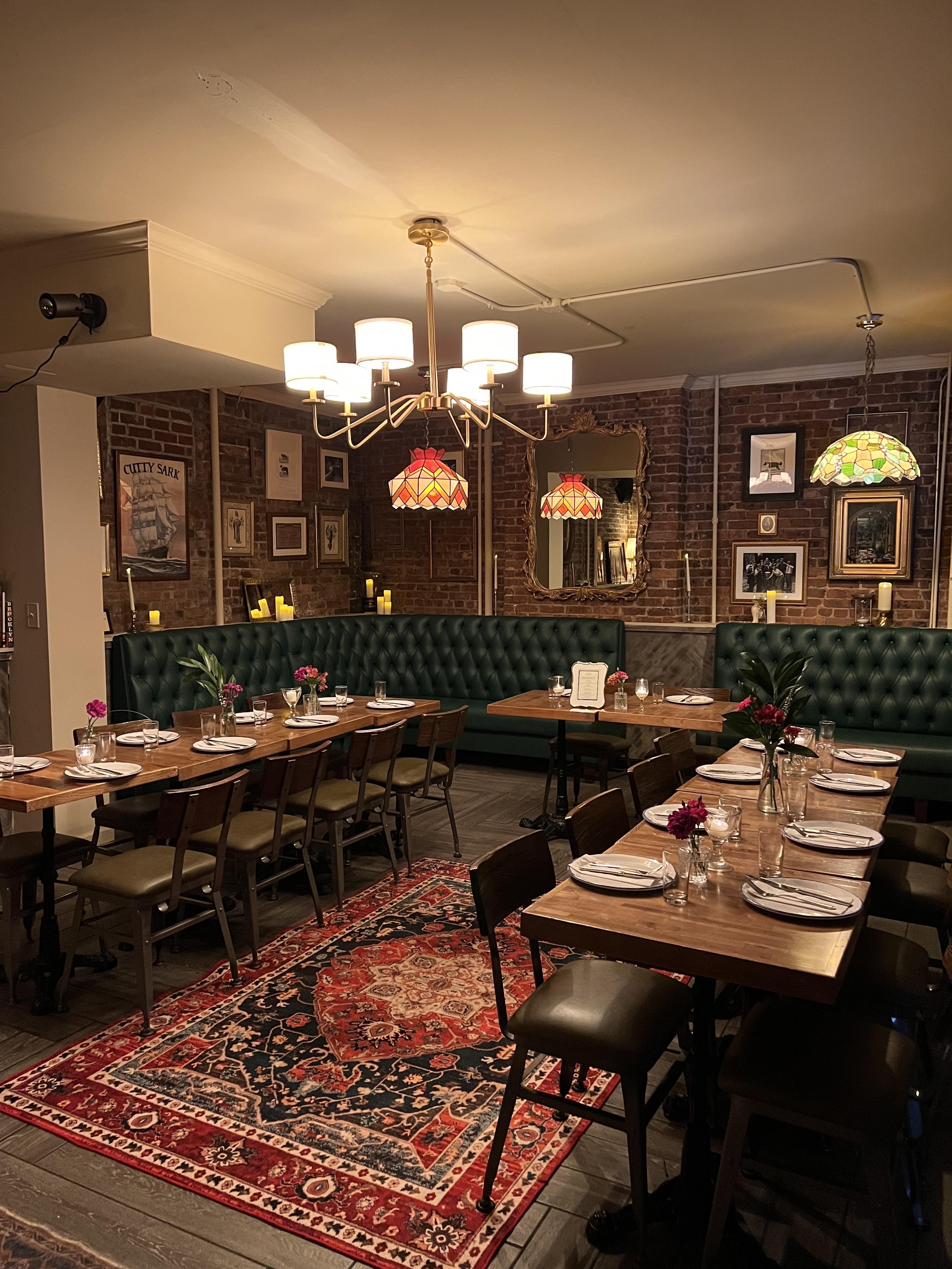 The Front Room + Bar can host up to 75 standing guests in a cocktail-style setting. This room features an original mahogany wood, marble & copper bar with finishes circa 1874 and original pressed tin ceiling. For use of Front Room + Bar, we require a food and beverage minimum of $8K for dinner (5K M-Th) and $7K for brunch (Sat & Sun).