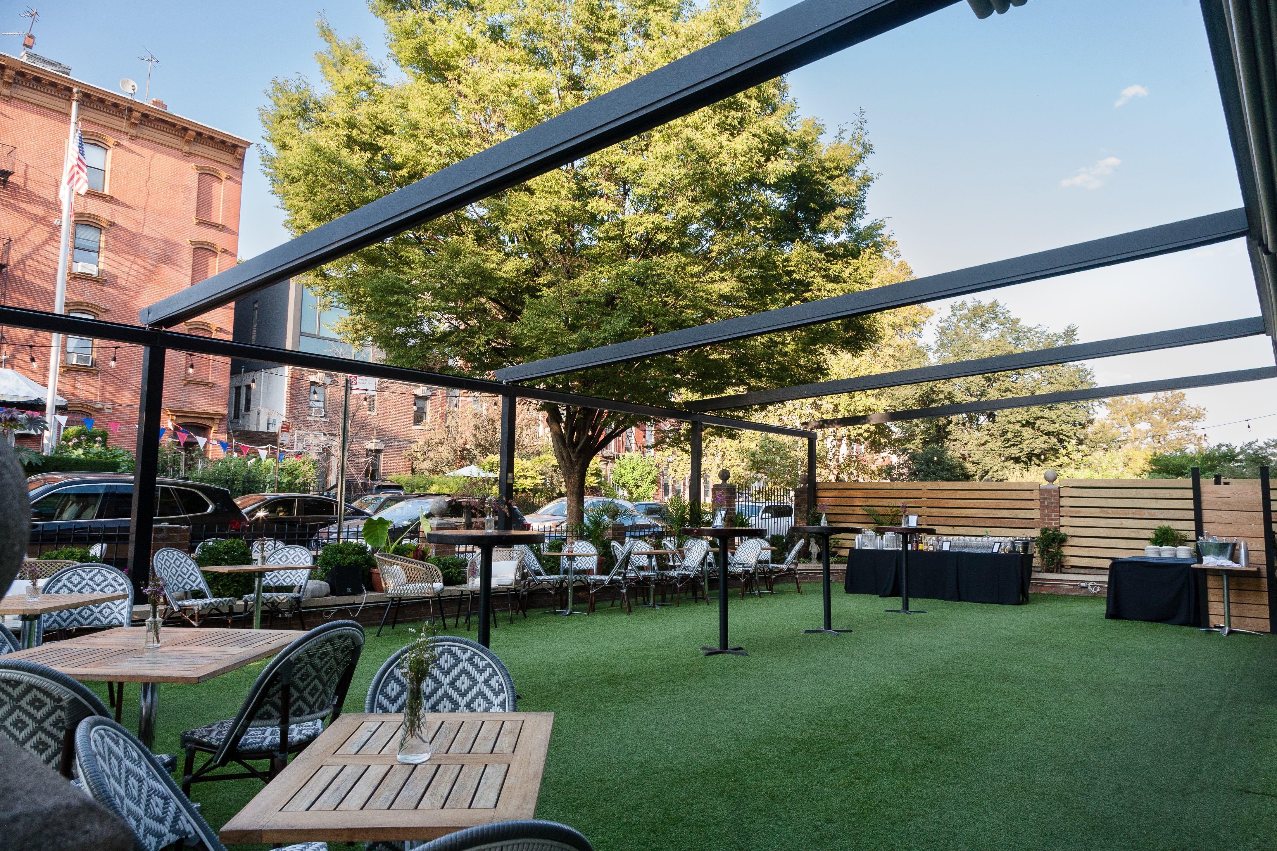 Located on the corner of Court St & 4th Place, our outdoor private garden boasts over 1,000 square feet. Covered in plush astro turf, it has flexible seating arrangements & can be cleared for a standing cocktail style event. 75 guests seated or 160 standing. For use of Full Garden, we require a food and beverage minimum of $12K for dinner (9K M-Th) & $10K for brunch (Sat & Sun). The outdoor space has a retractable roof awning for rain assurance + Audio/Visual capabilities for slideshows.