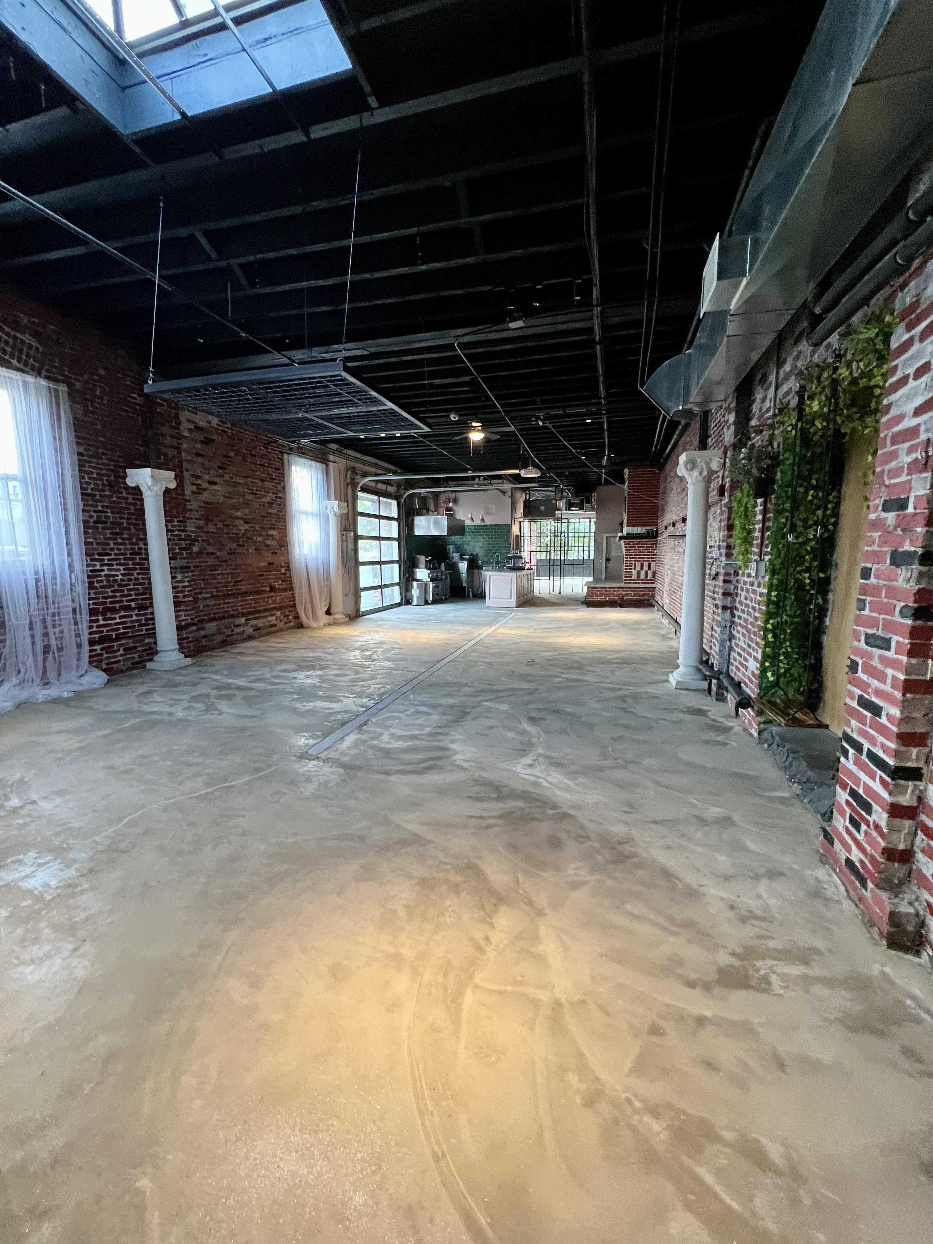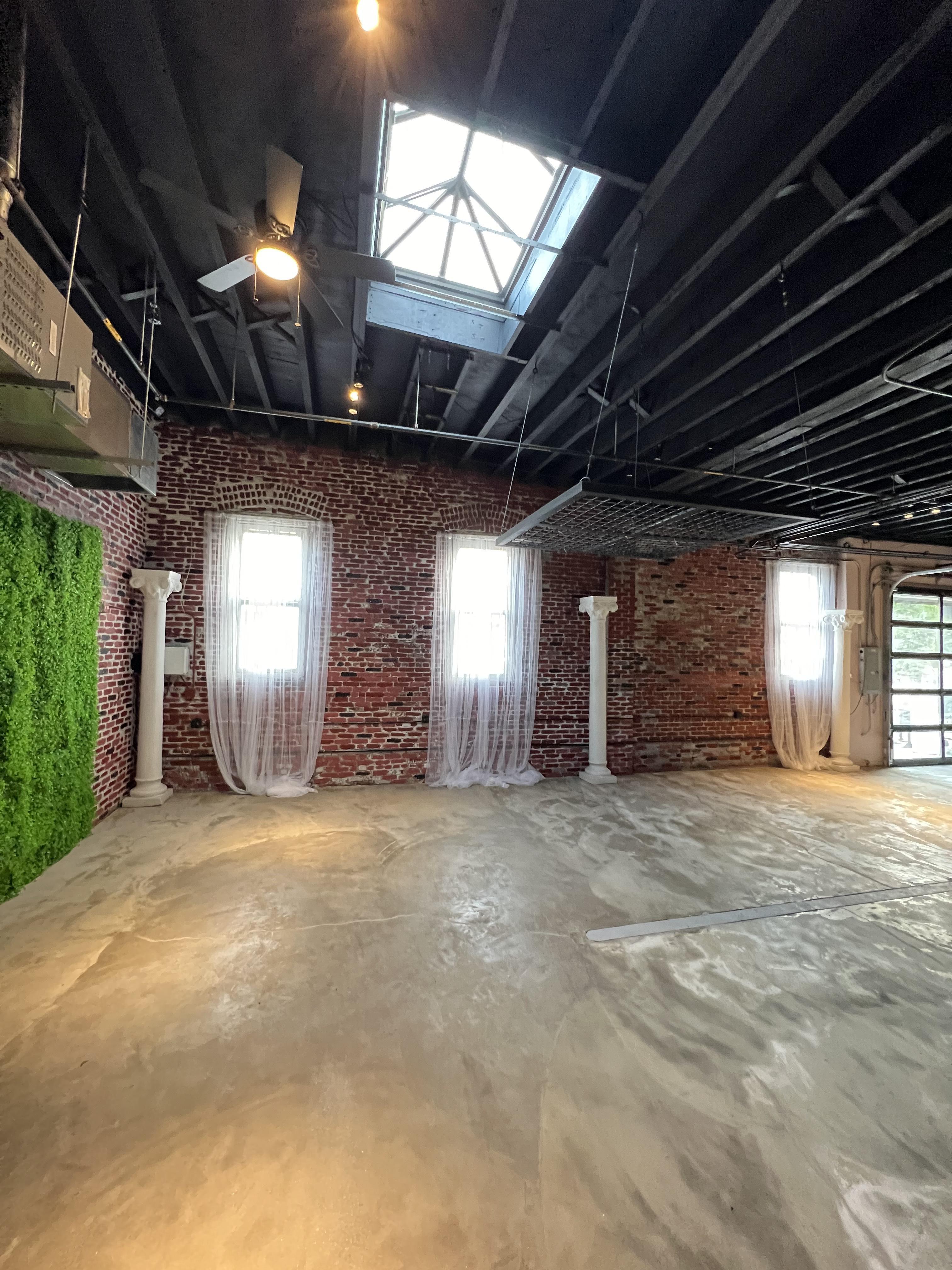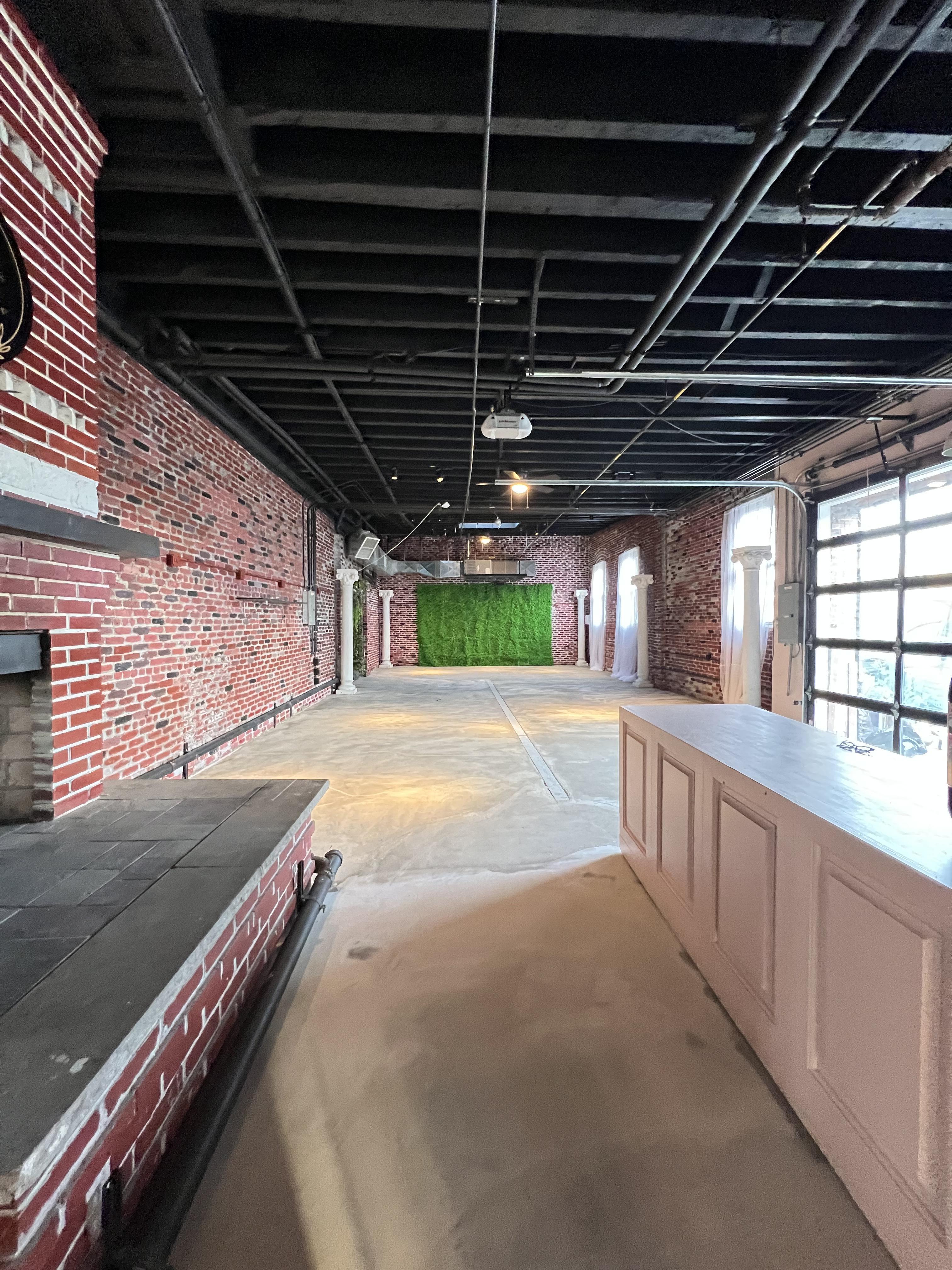 Our main Space have exposed bricks, a real fire space, huge windows, a wide open gate that allows vendors to access quickly to the space.