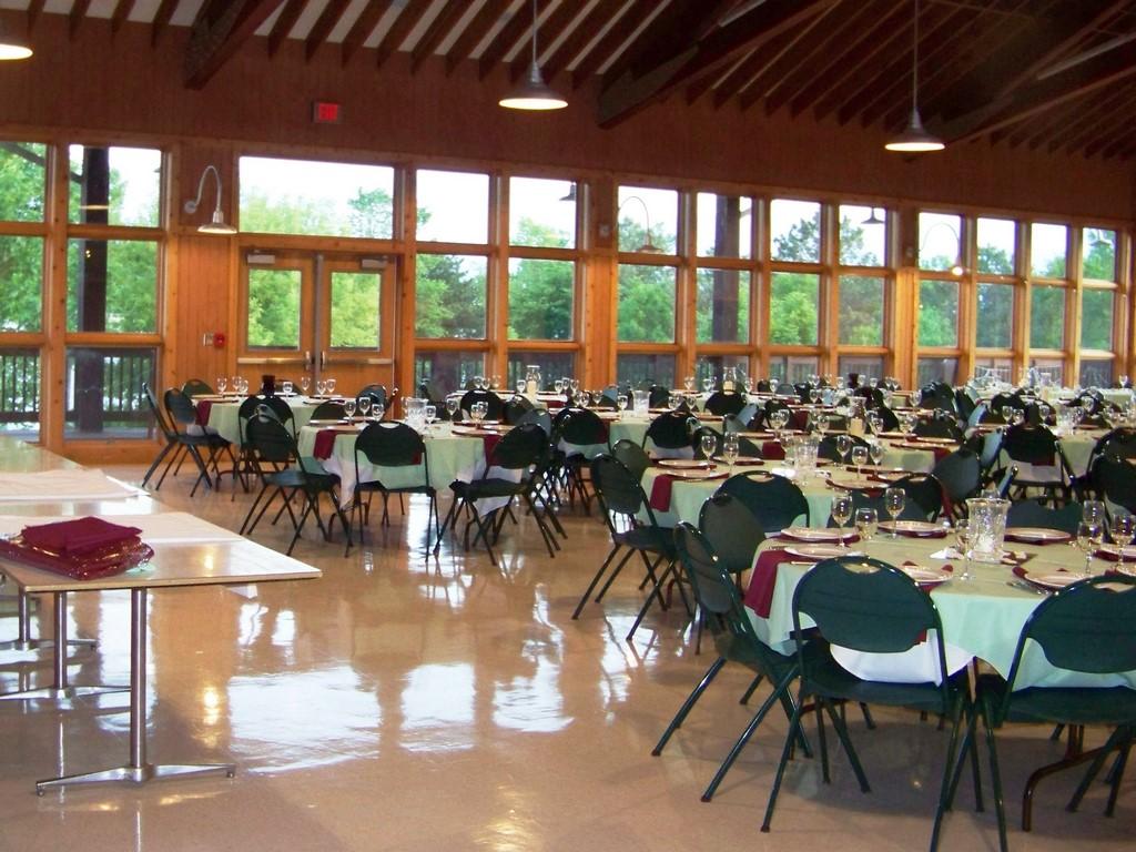 - Reservations are from Friday 3pm to Sunday 11am - Whole Event Center and outdoor space included. - Rehearsal dinner at venue - (24) 6ft round tables - (9) 6ft rectangle tables - (200) indoor chairs - (40) wooden benches for outdoor ceremony - Multiple restrooms - Prep kitchen for caterers - Access to walk-in fridge/freezer - Access to ice machine - Downstairs space for room swap/cocktail hour - Dock access for boat pickup/drop off