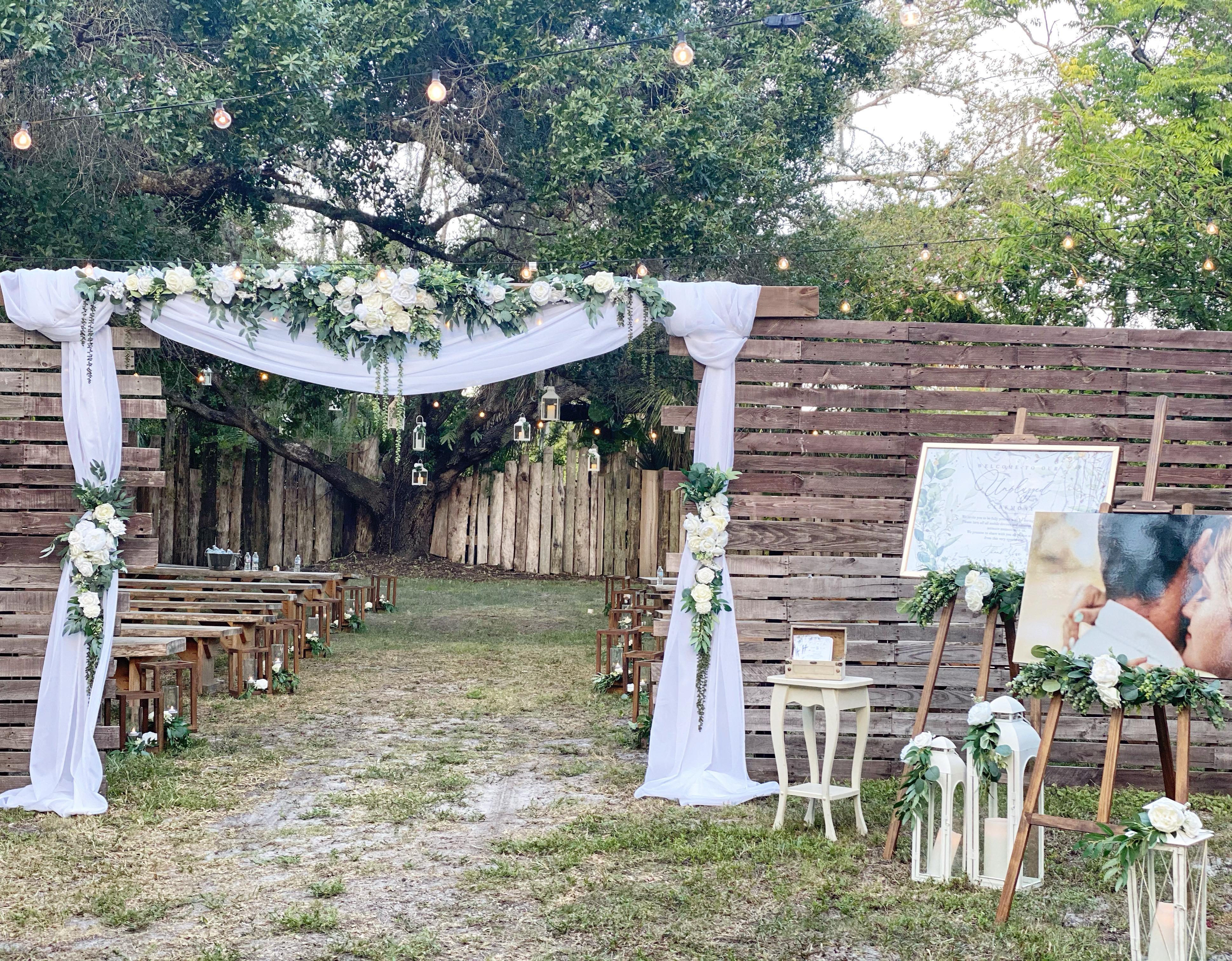 We are a family owned and operated working farm located in the heart of Buckingham Florida just outside of Ft Myers. We are conveniently just 5 minutes off of interstate 75 but you would never know it! We are just far enough out that it feels like your out in the country. The venue side of our farm has two ceremony locations to choose from, a man cave, reception barn, fire pits, rustic mobile bars, large air conditioned restrooms, as well as a 4/3 farmhouse that includes the bridal suite.
