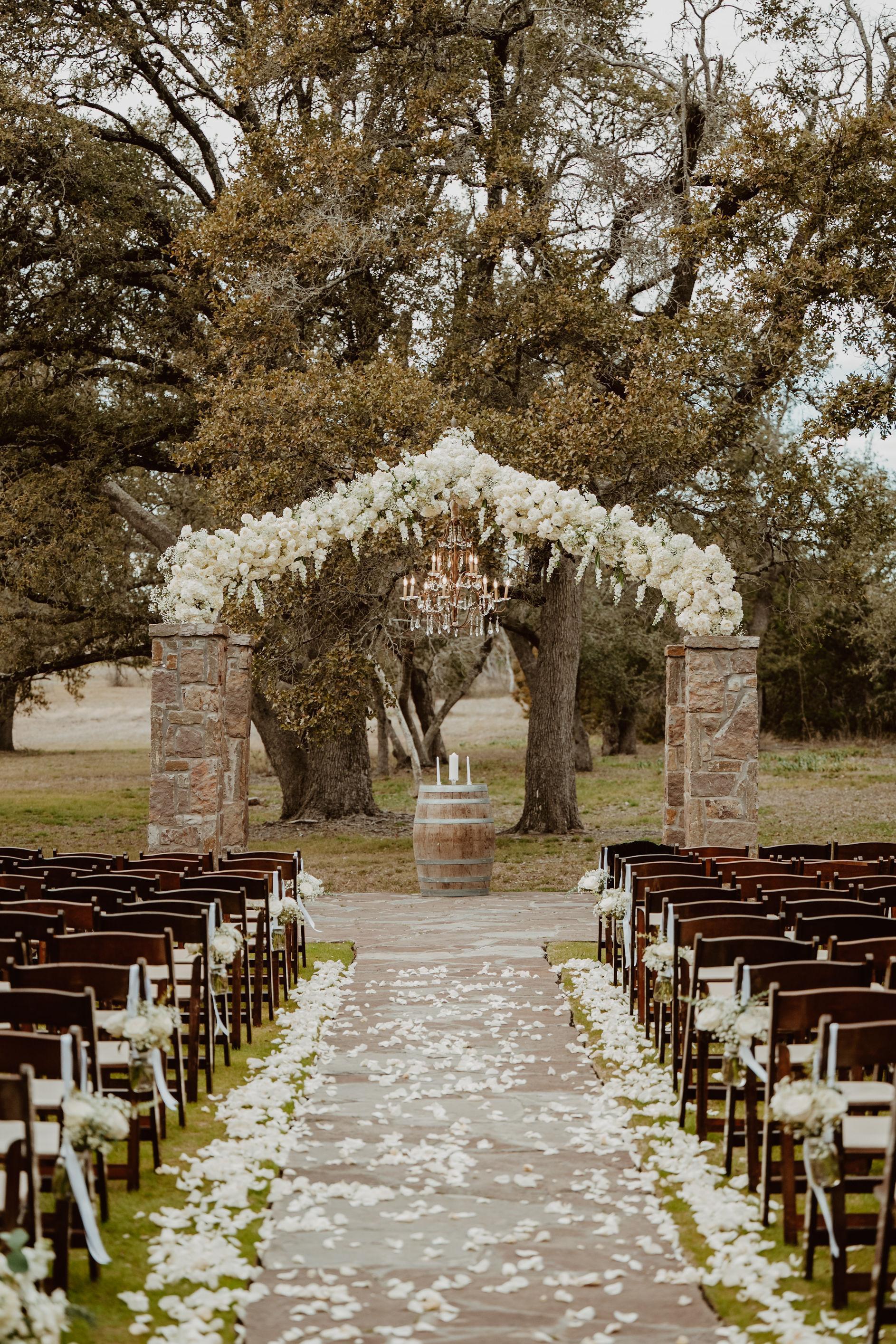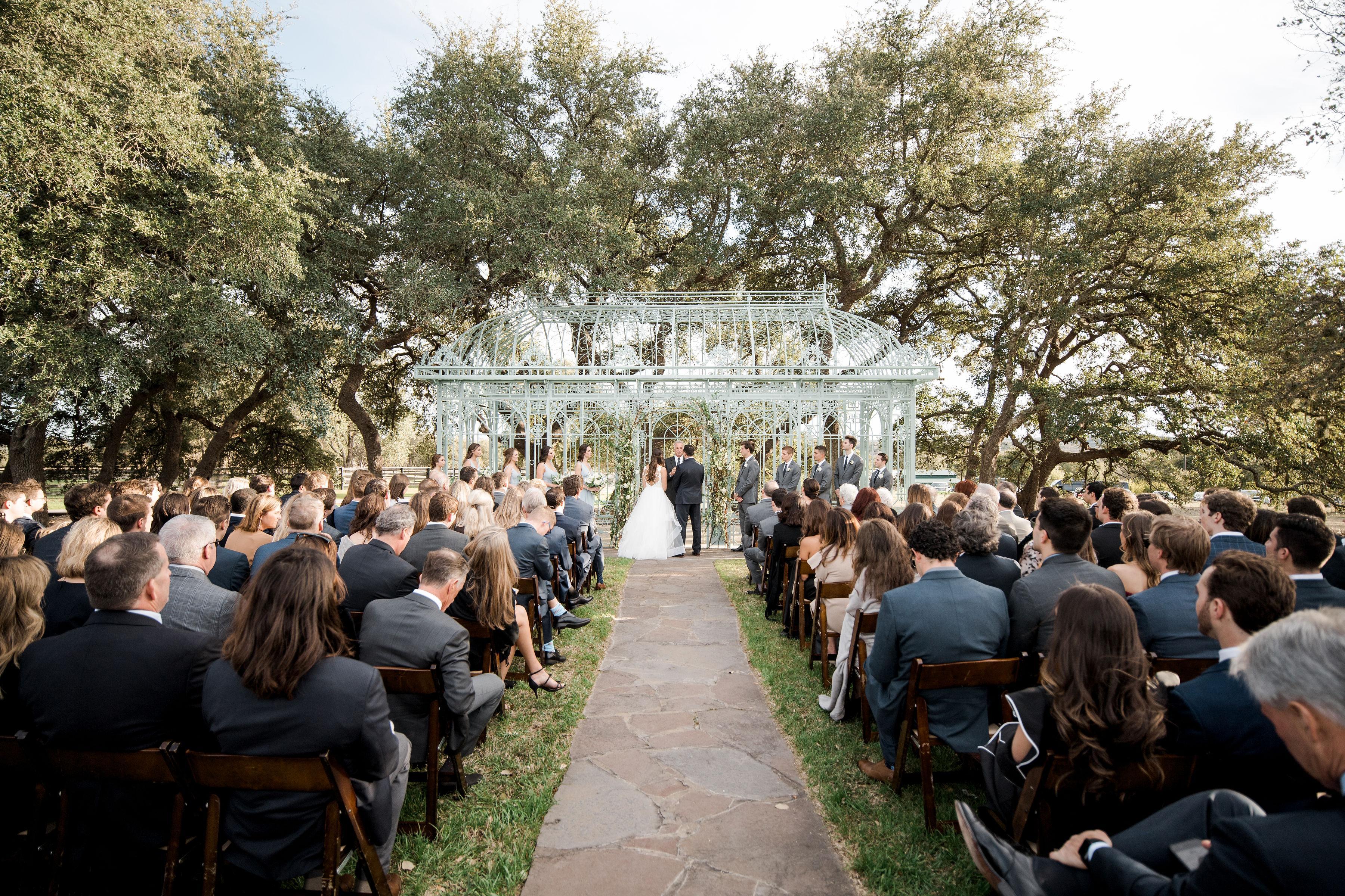 Nestled under a grove of live oak trees, The Grove is our largest and most popular outdoor location for your romantic Hill Country ceremony. The area can be adapted to host small ceremonies, as well as ceremonies of up to 600 guests. There is a stone altar wired to accommodate lighting and audio equipment. Please contact us directly for Pricing and Availability: info(at)themamaison.com