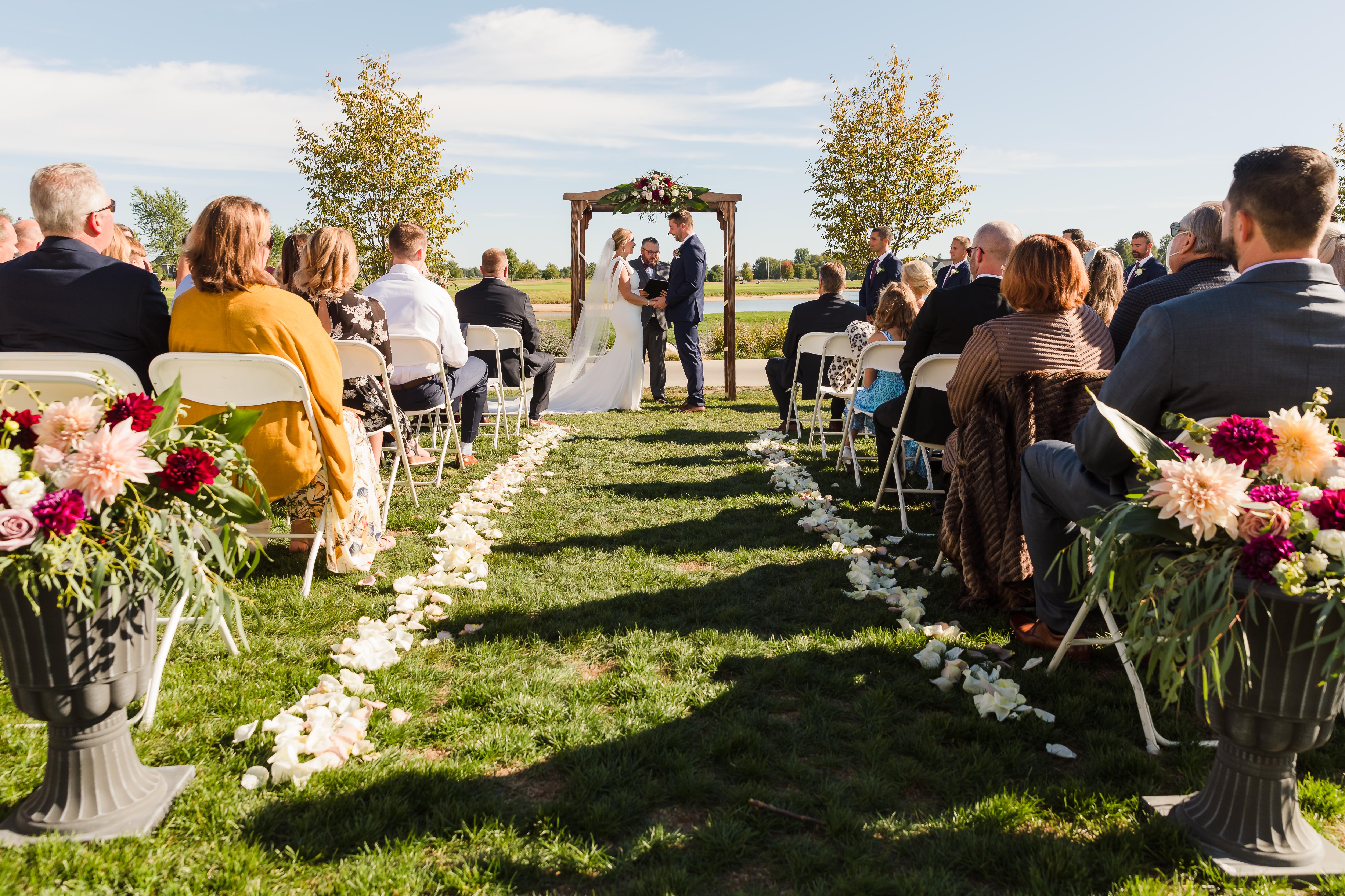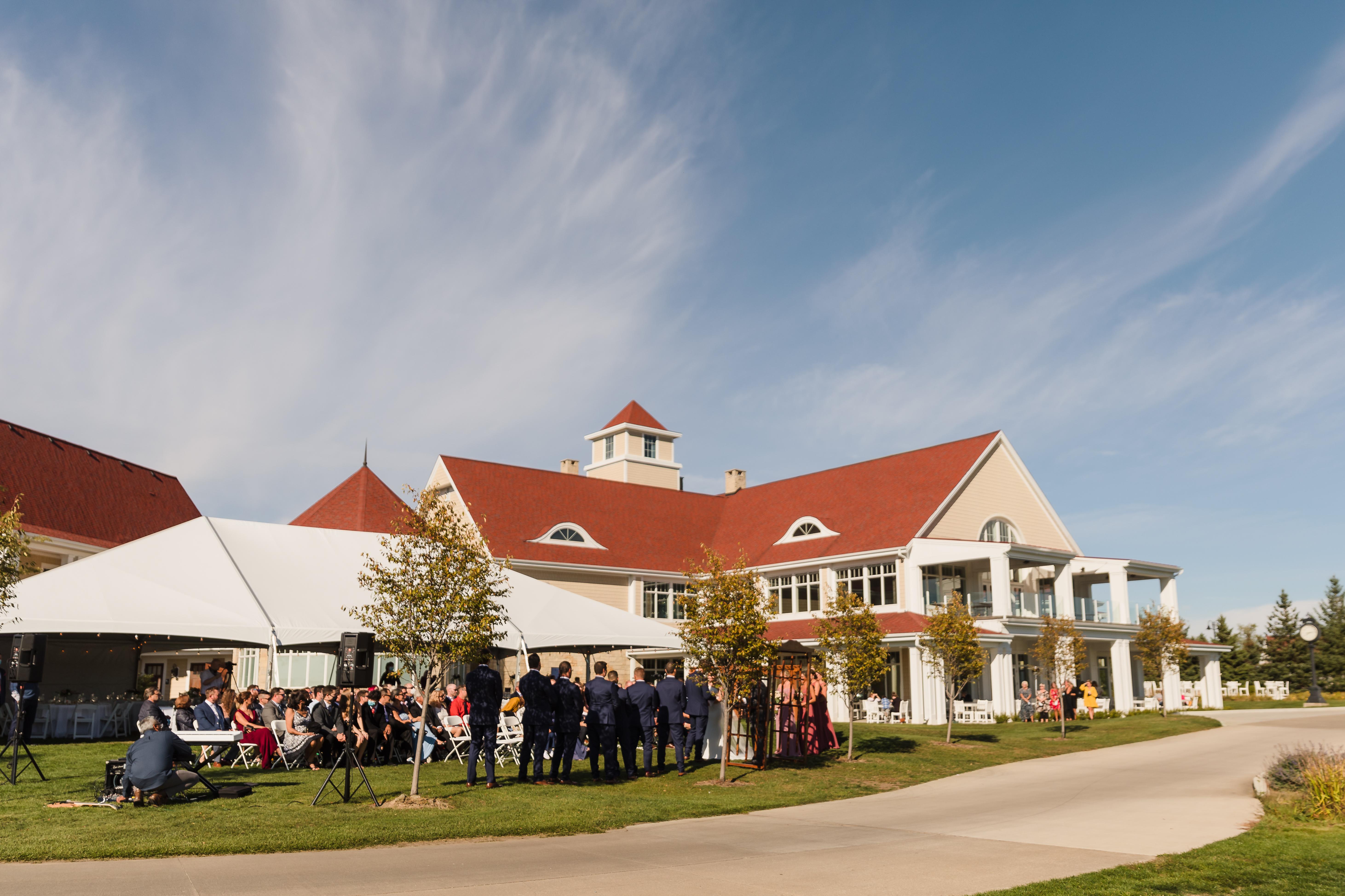 Macatawa offers a beautiful outdoor ceremony site in the rear of the clubhouse. The perfectly manicured lawn area overlooking the golf course and water provides a gorgeous backdrop to say "I do". The ceremony site is conveniently located right off the bridal suite for an easy transition down the aisle and added convenience for your wedding guests.
