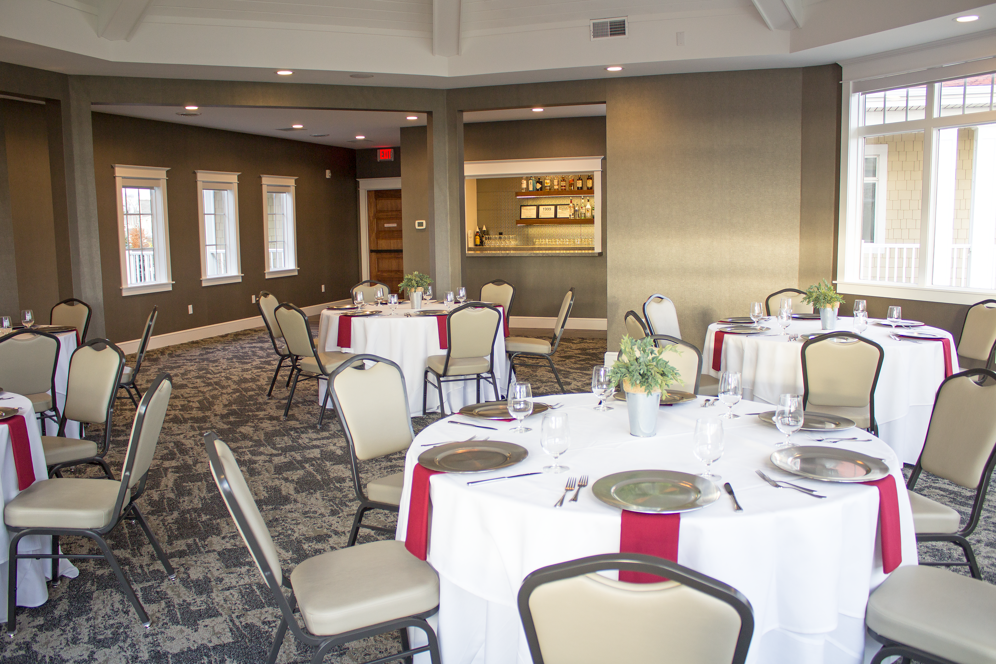 The Macatawa Ballroom offers many seating options and can be transformed to fit the needs of your event. The newly remodeled interior provides a grand ambiance and elegant style. This room works great for larger events and is sure to impress with vaulted ceilings, three walls of large windows, patio access and beautiful views!