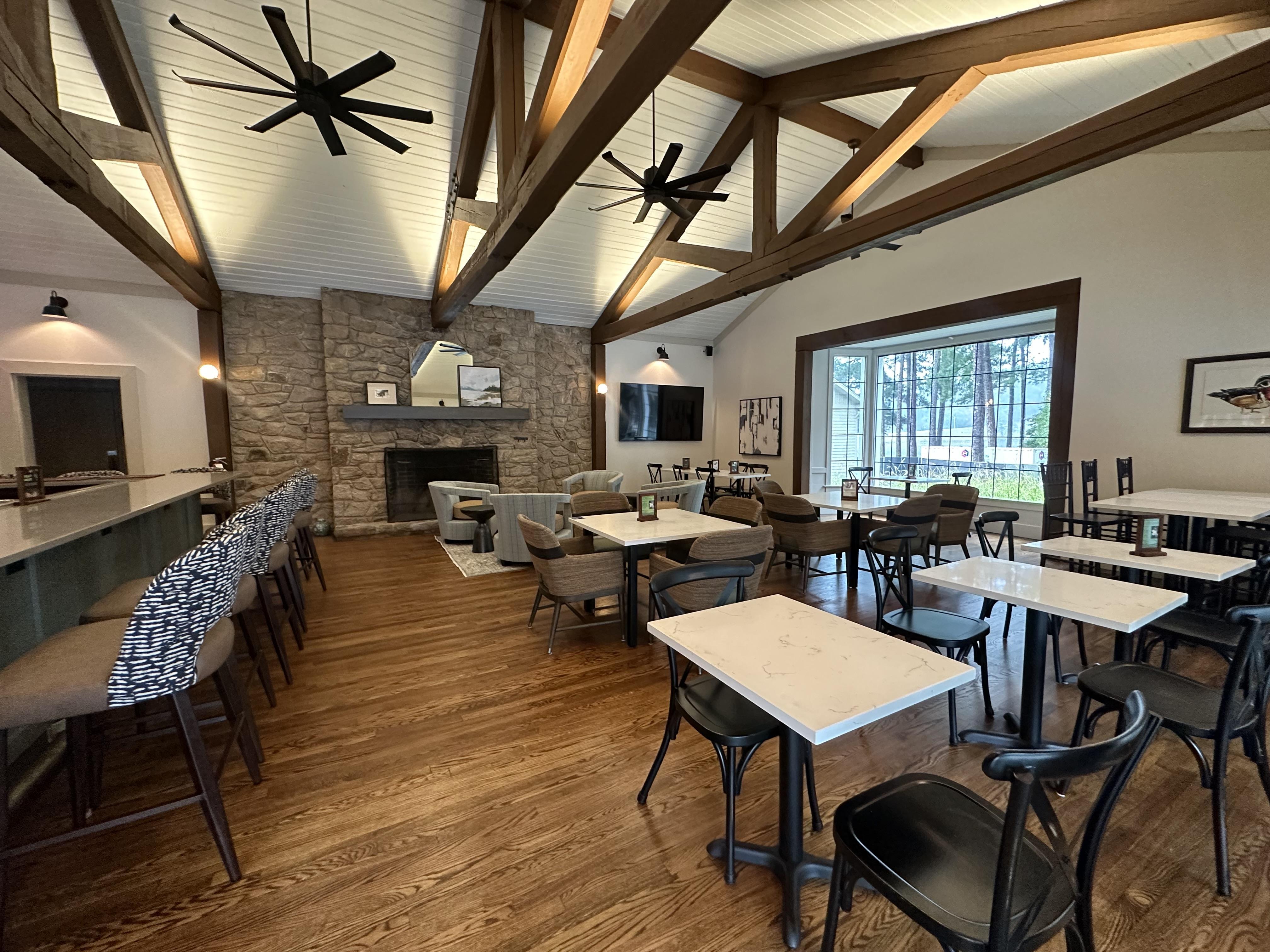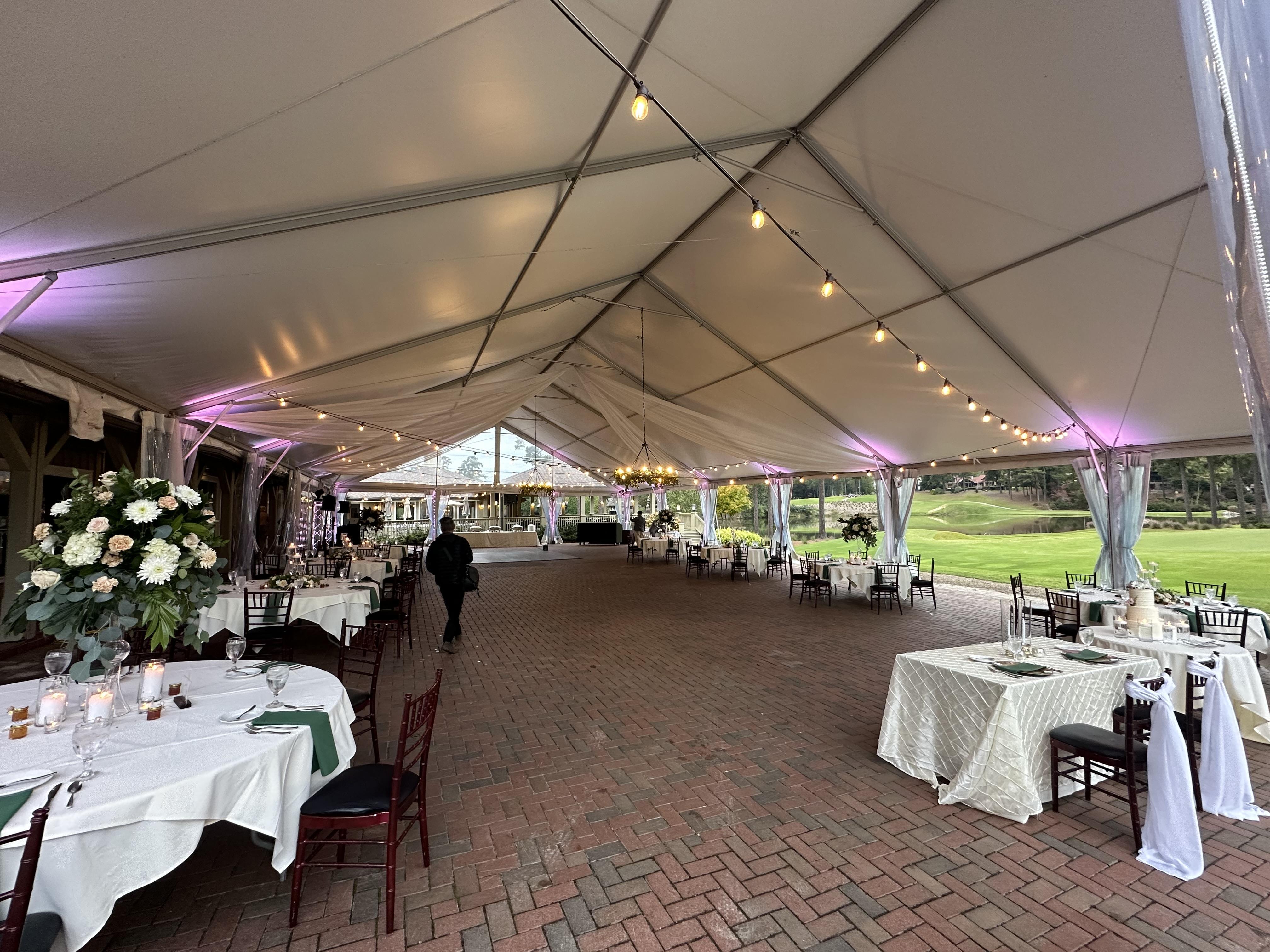 This space features a 4500 square foot patio, feature new chandeliers, brand new cooling fixtures, and unparalleled views of the 18th Green and Lake MacGregor; perfect for ceremonies and receptions.