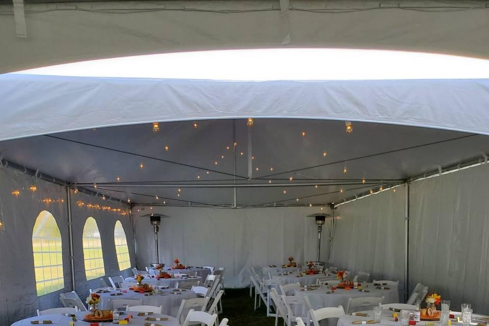 offer 3200 square feet of space and are perfect for wedding receptions, graduation parties, and reunions. tables, chairs, dance floor, linens & propane heaters are available for rent.